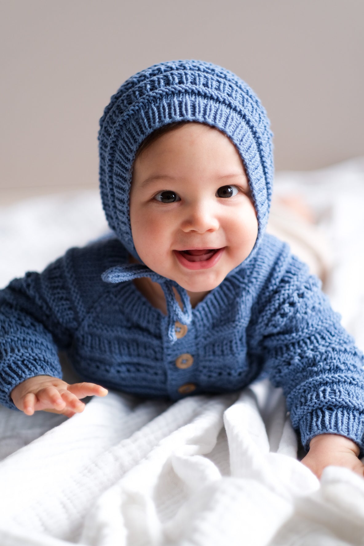 Biscotti hentesett består av jakke, bleiebukse og kyse. Settet er strikket i strukturstrikk med en enkel struktur som er lett å memorere.