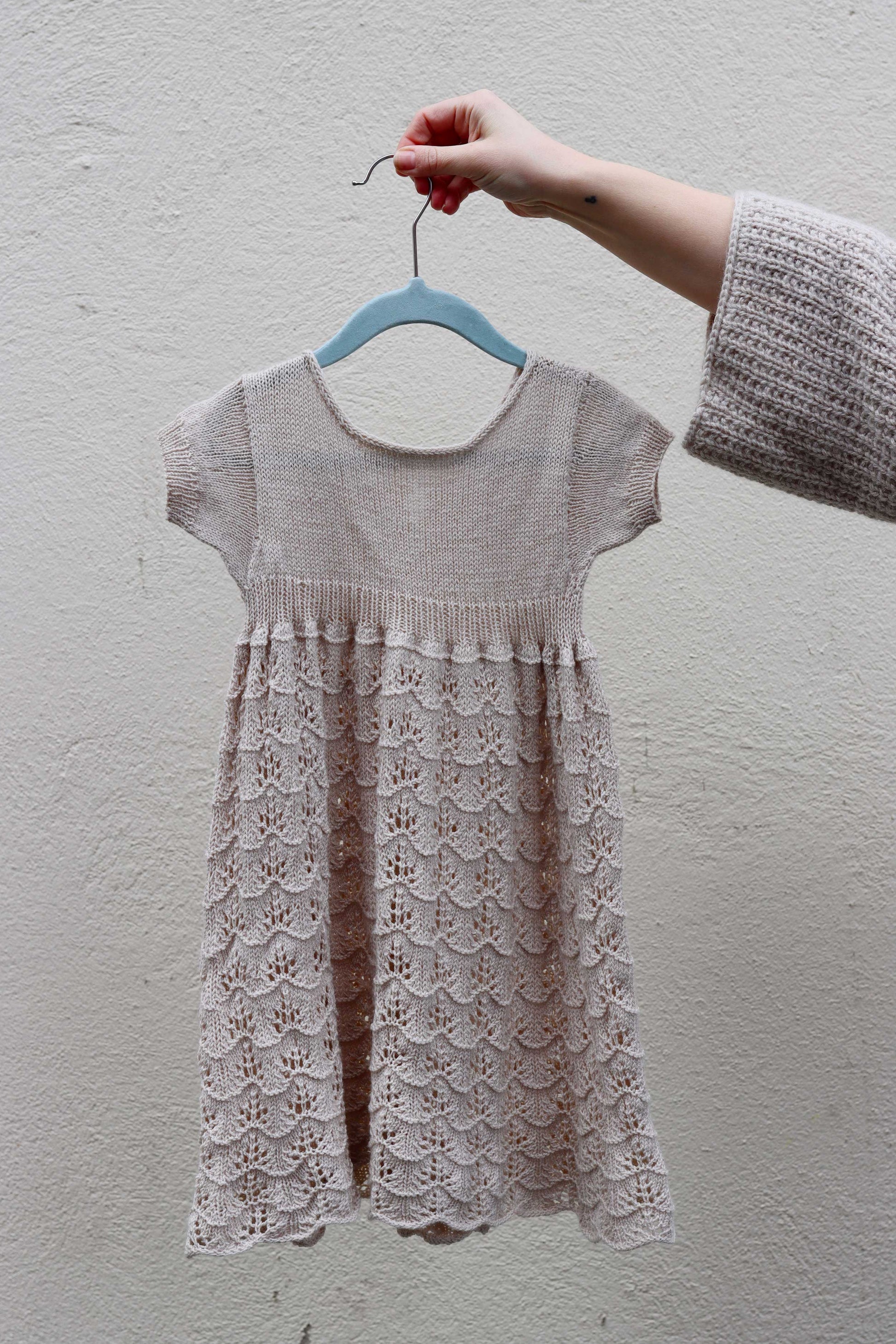 Bølgesuskjolen er en kjole strikkes nedenfra og opp med en struktur på skjørtet som det både er gøy og enkelt å strikke! Skjørtet strikkes på pinne 3 og overdelen på pinne 3,5.