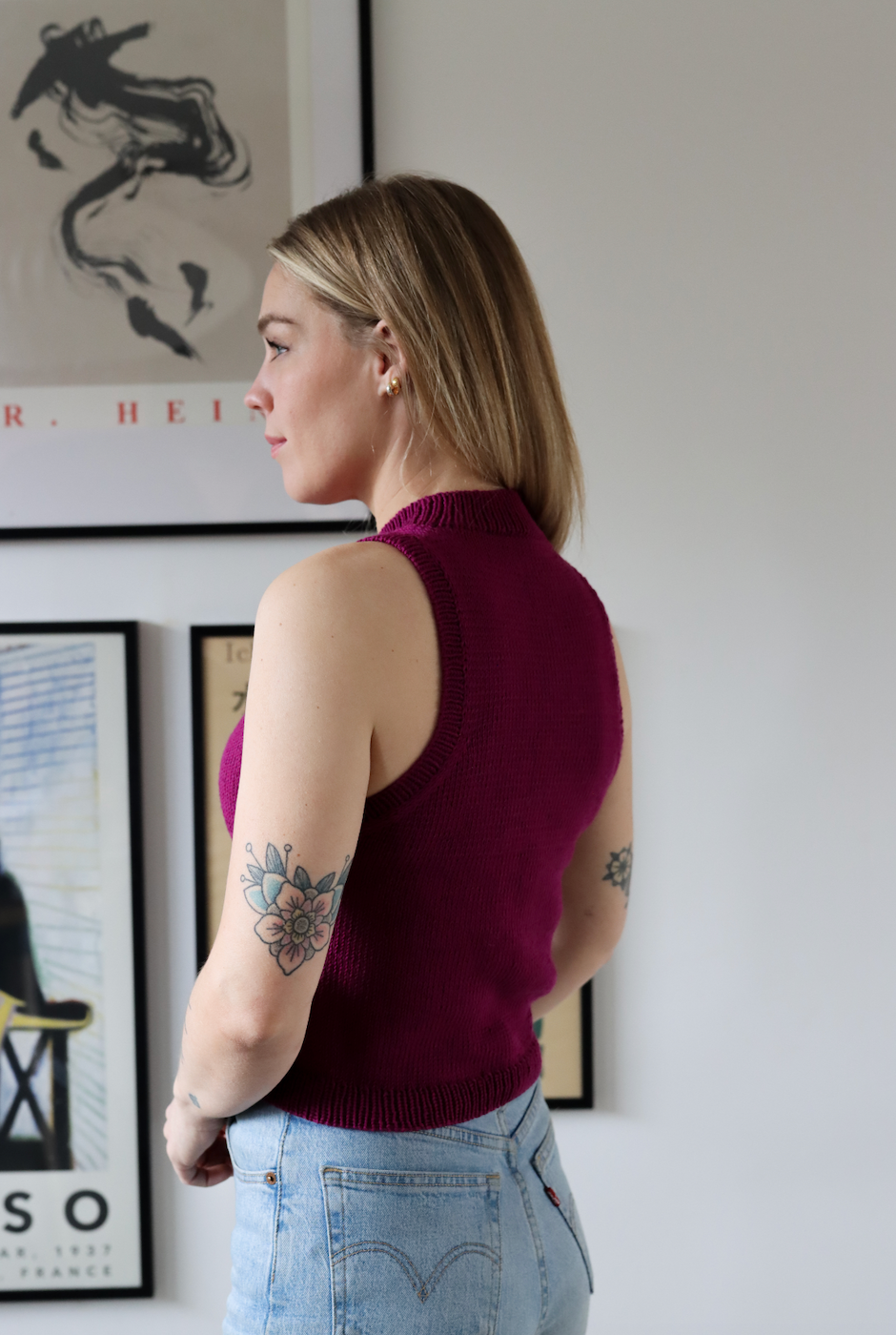 Lilja tank er en basic topp med halvhøy hals. Den er ettersittende, formflatterende og cropped i livet. Siden den strikkes ovenfra kan den med fordel prøves på underveis for den perfekte lengden til akkurat deg!