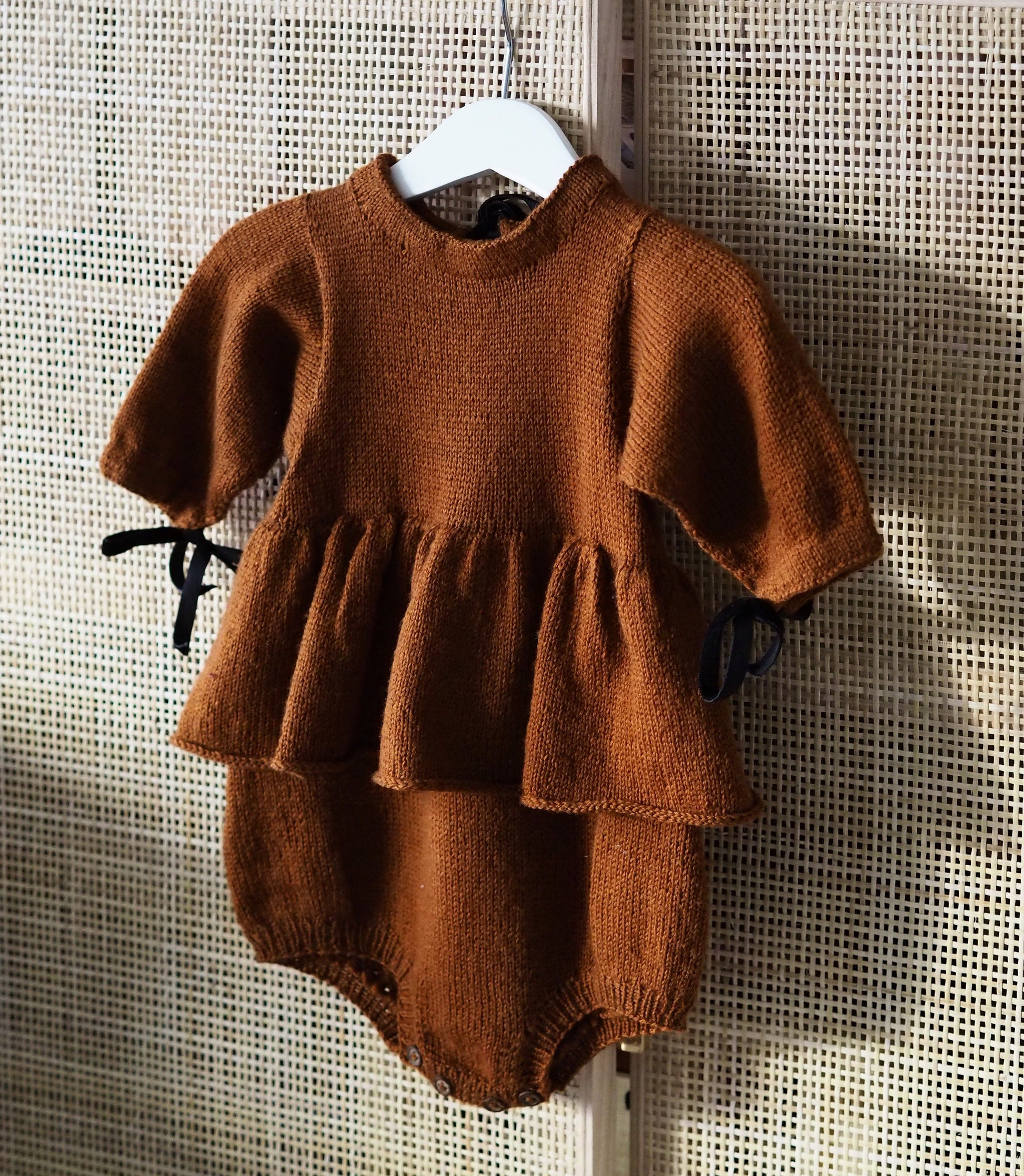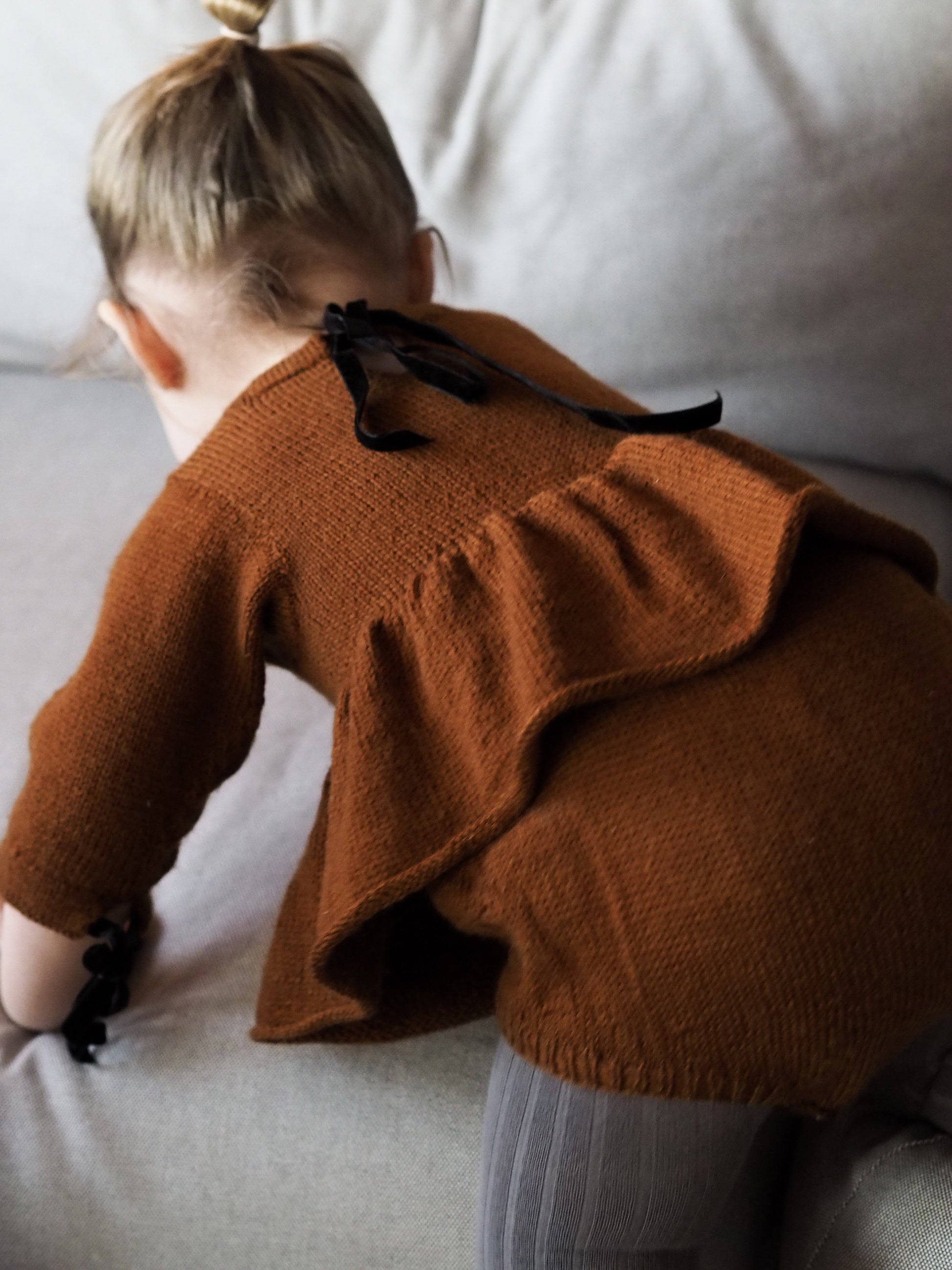The Nova playsuit is a light and feminine romper with a little ruffle-skirt. It is worked from the bottom upwards, while the lower part of the romper and the skirt are worked separately first and joined in the middle.