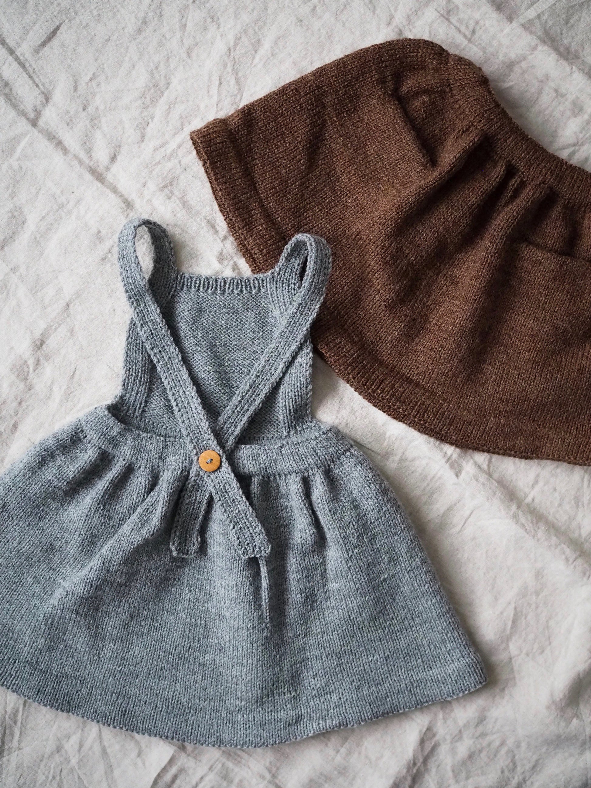 The Playskirt is knitted top down with a folded edge and an elastic waistline. Since it is worked top down, the length can be adjusted as desired.