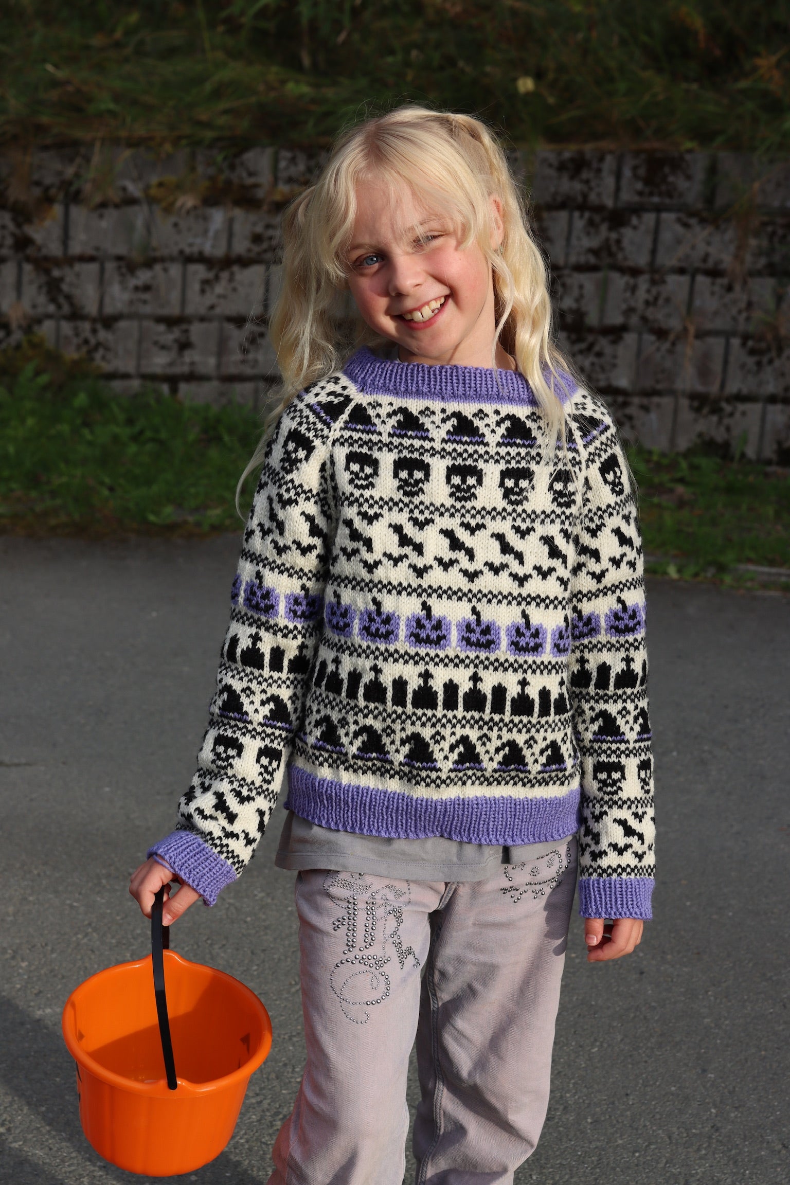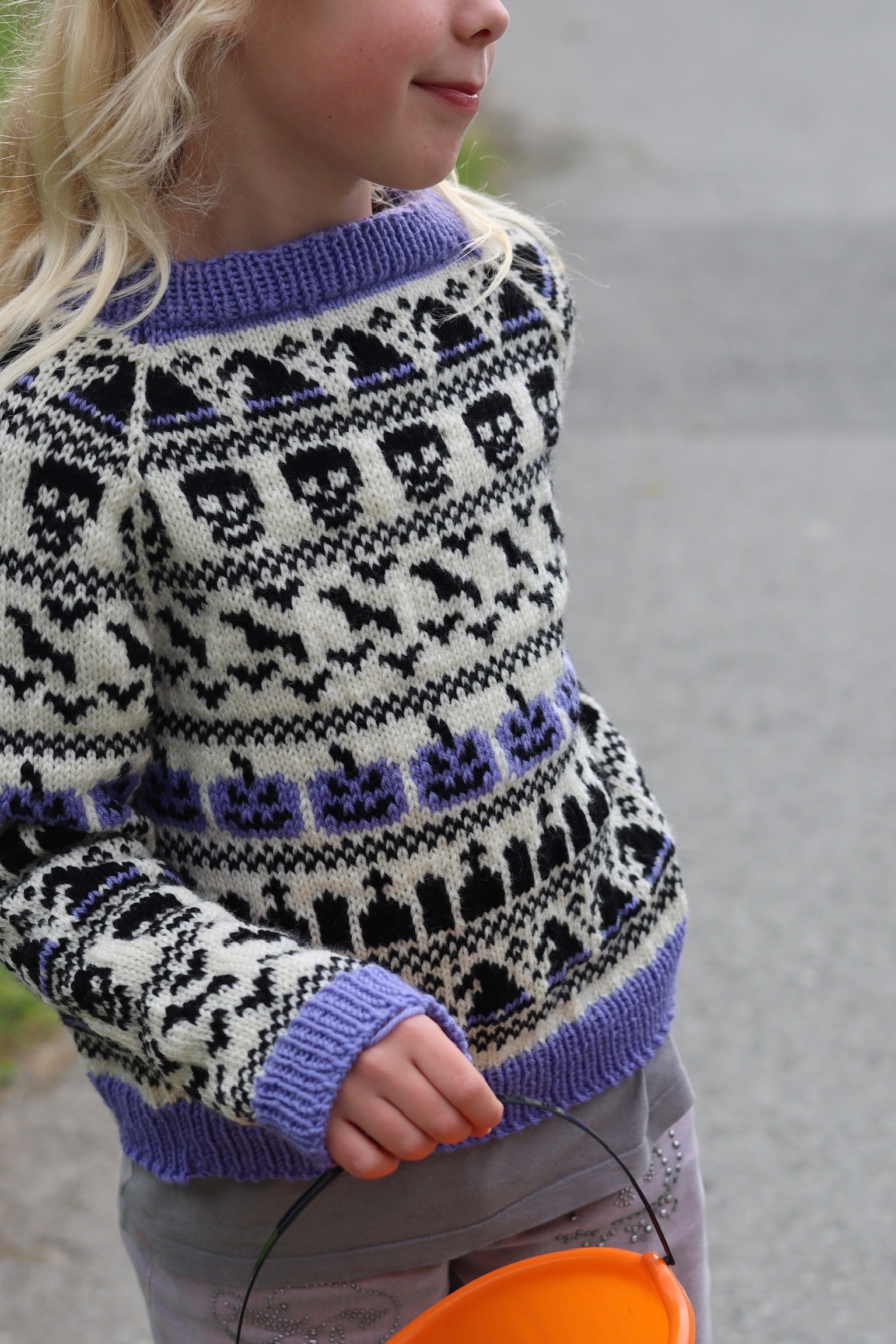 Un-told Spooky Sweater er en leken, men kul genser i mønsterstrikk. Strikk den med to mønsterfarger eller strikk i så mange mønsterfarger du ønsker for å skape din egen variant. Bruk gjerne restegarn! Genseren strikkes ovenfra og ned med raglanøkninger og mønsterstrikk. Prøv den gjerne på underveis for å få en perfekt lengde til mottakeren.