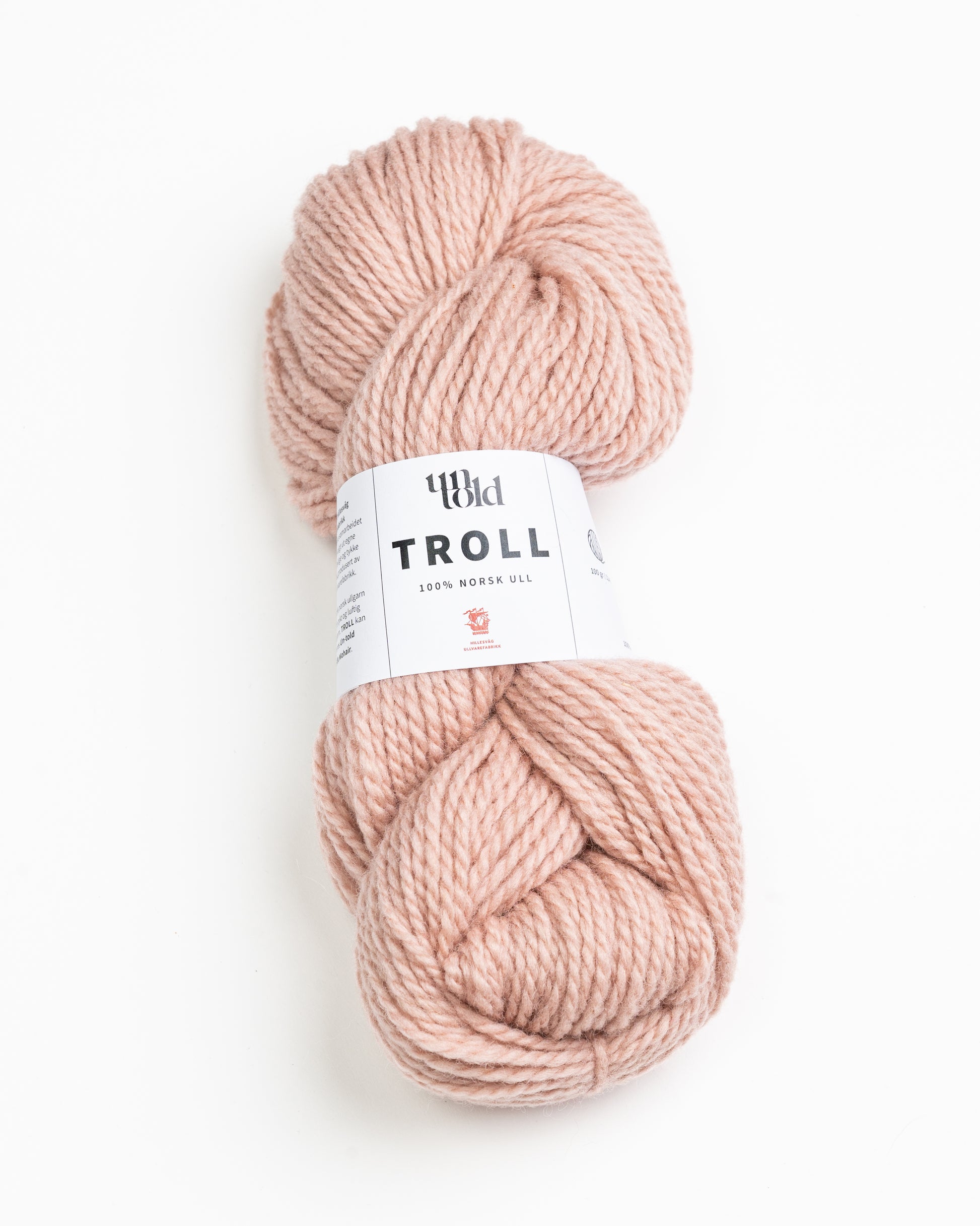 Un-told Troll er 100% ren norsk ull fra Hillesvåg Ullvarefabrikk. I dette eksklusive samarbeidet har Un-told valgt ut egne farger i det deilige og tykke garnet TROLL produsert av Hillesvåg Ullvarefabrikk.