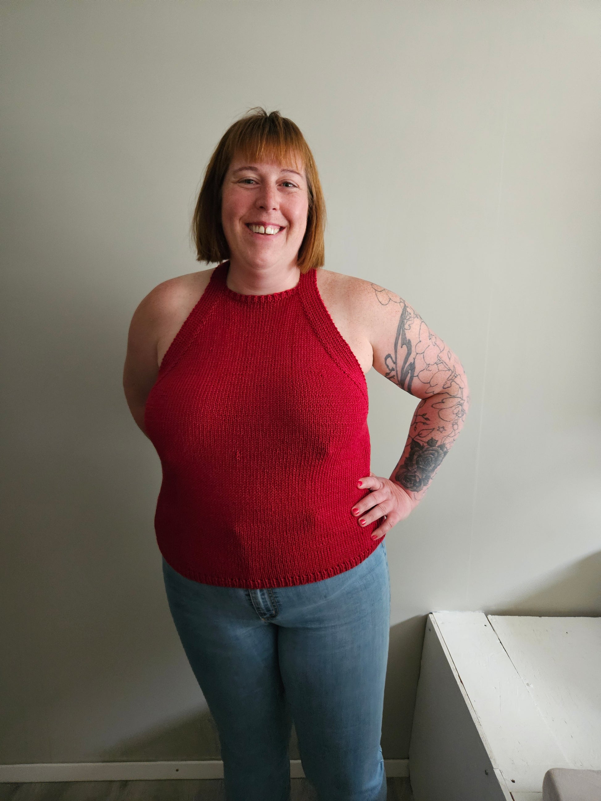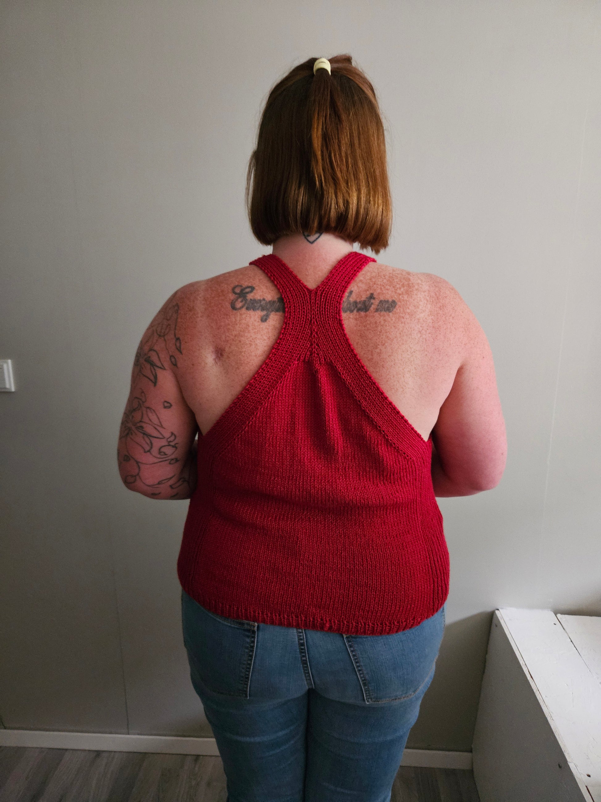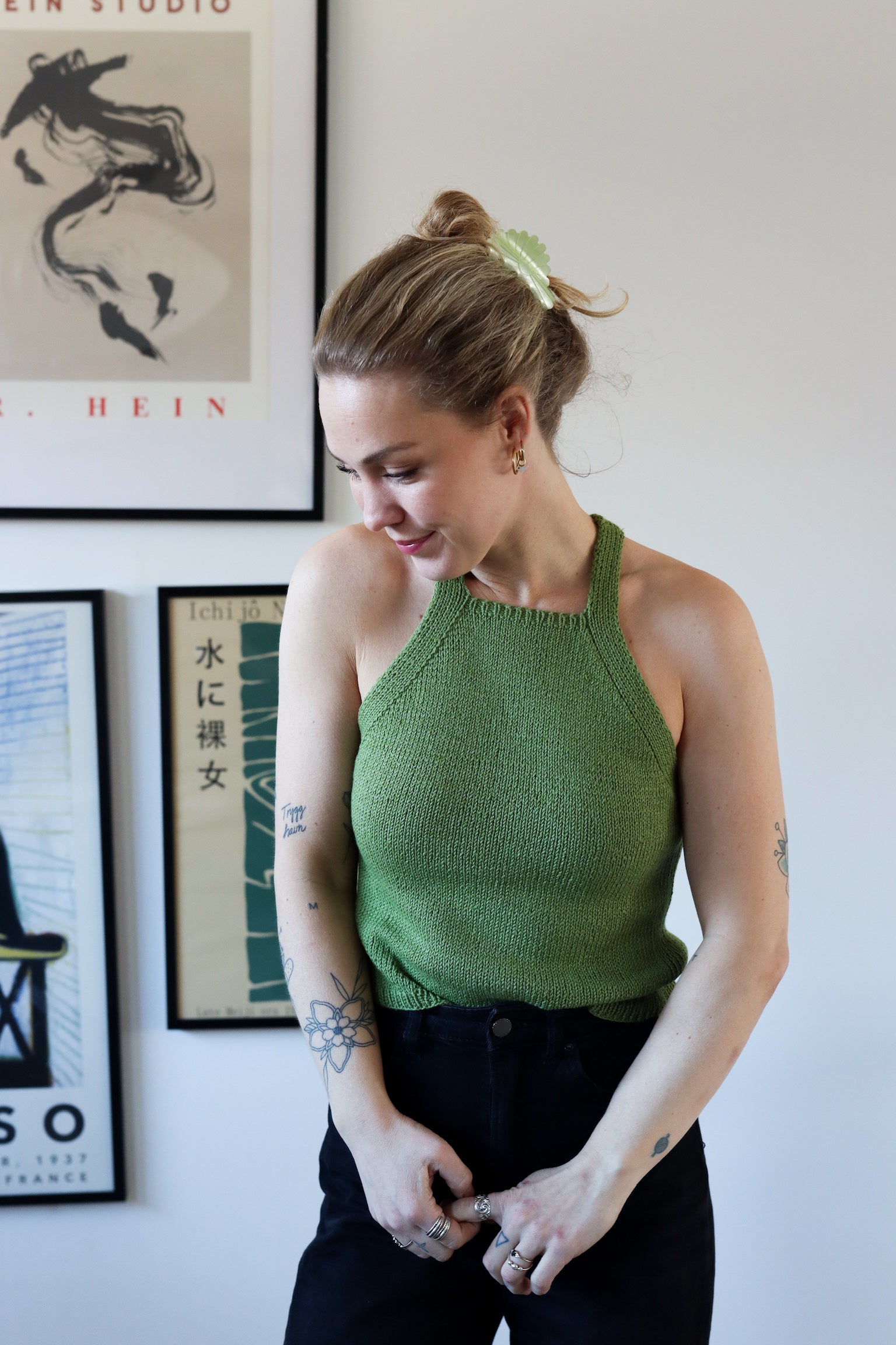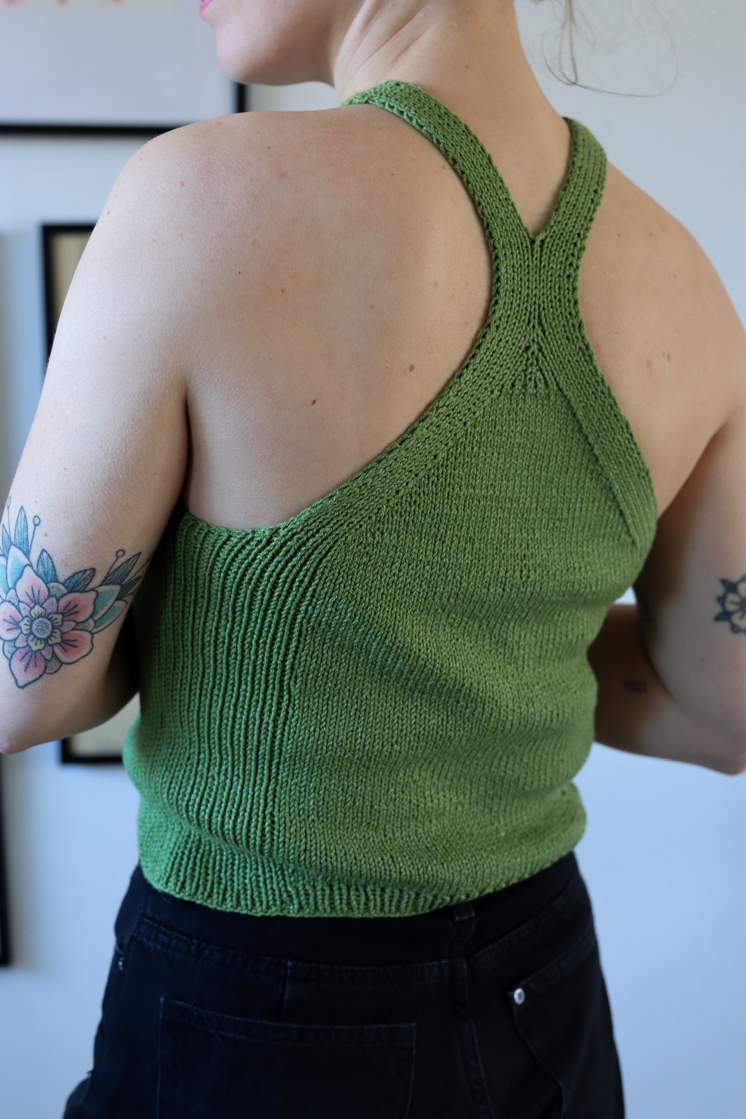 Basil topp er en enkel singlet med racerback rygg. Den er ettersittende, formflatterende og cropped i livet. Siden den strikkes ovenfra kan den med fordel prøves på underveis for den perfekte lengden til akkurat deg!