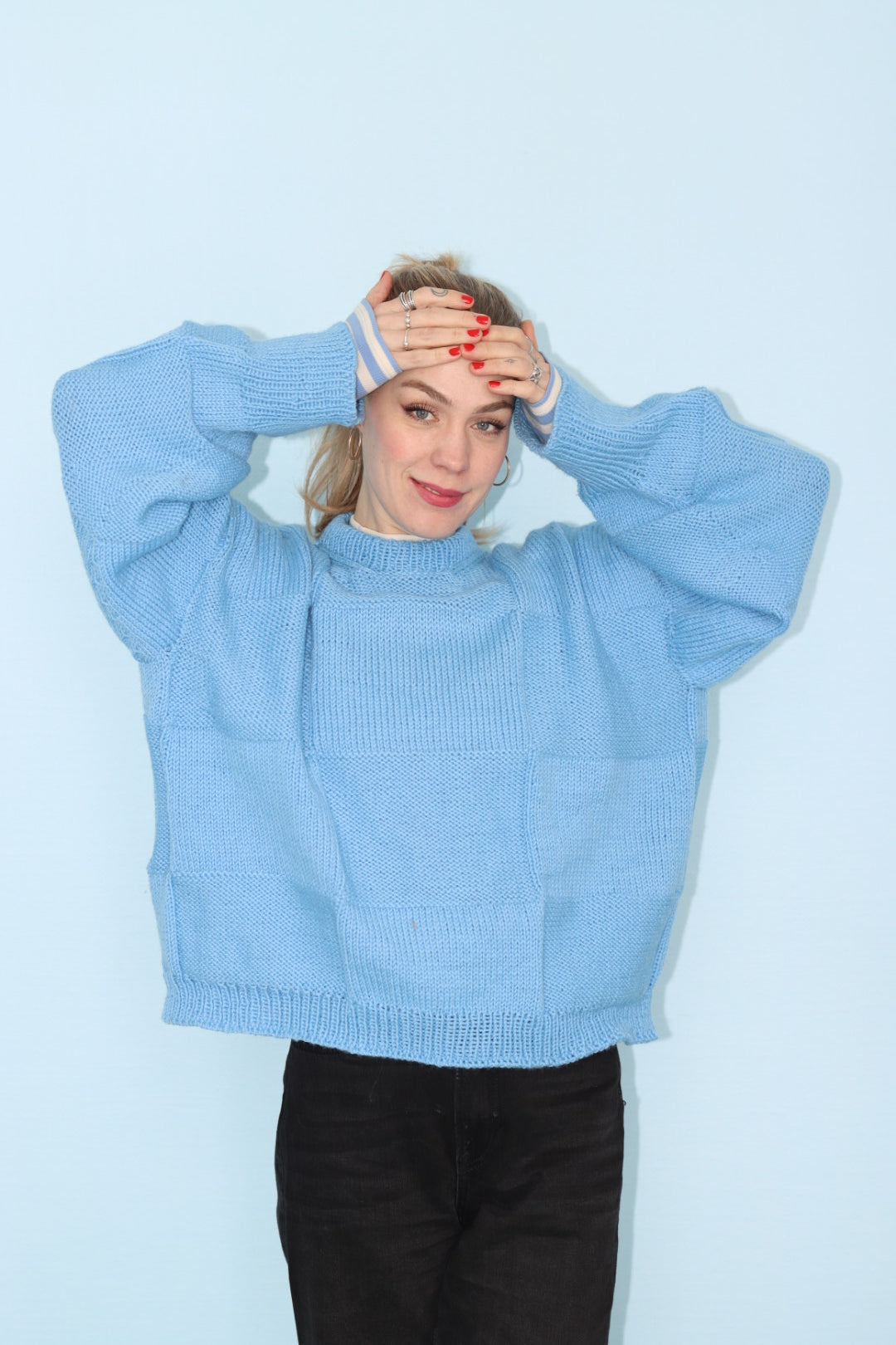 Basquesweater er en oversize og kul genser som strikkes ovenfra og ned, i store ruter. Fremstykkene og bakstykkene strikkes hver for seg før de settes sammen og danner bolen. Ermene plukkes opp og strikkes nedover.