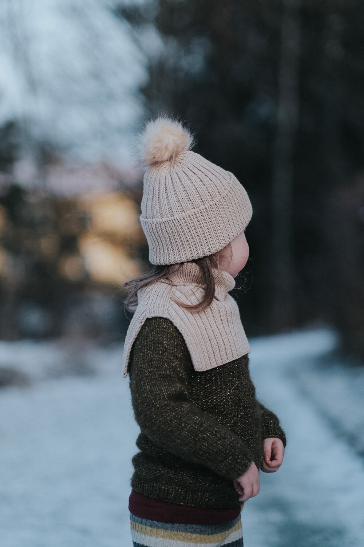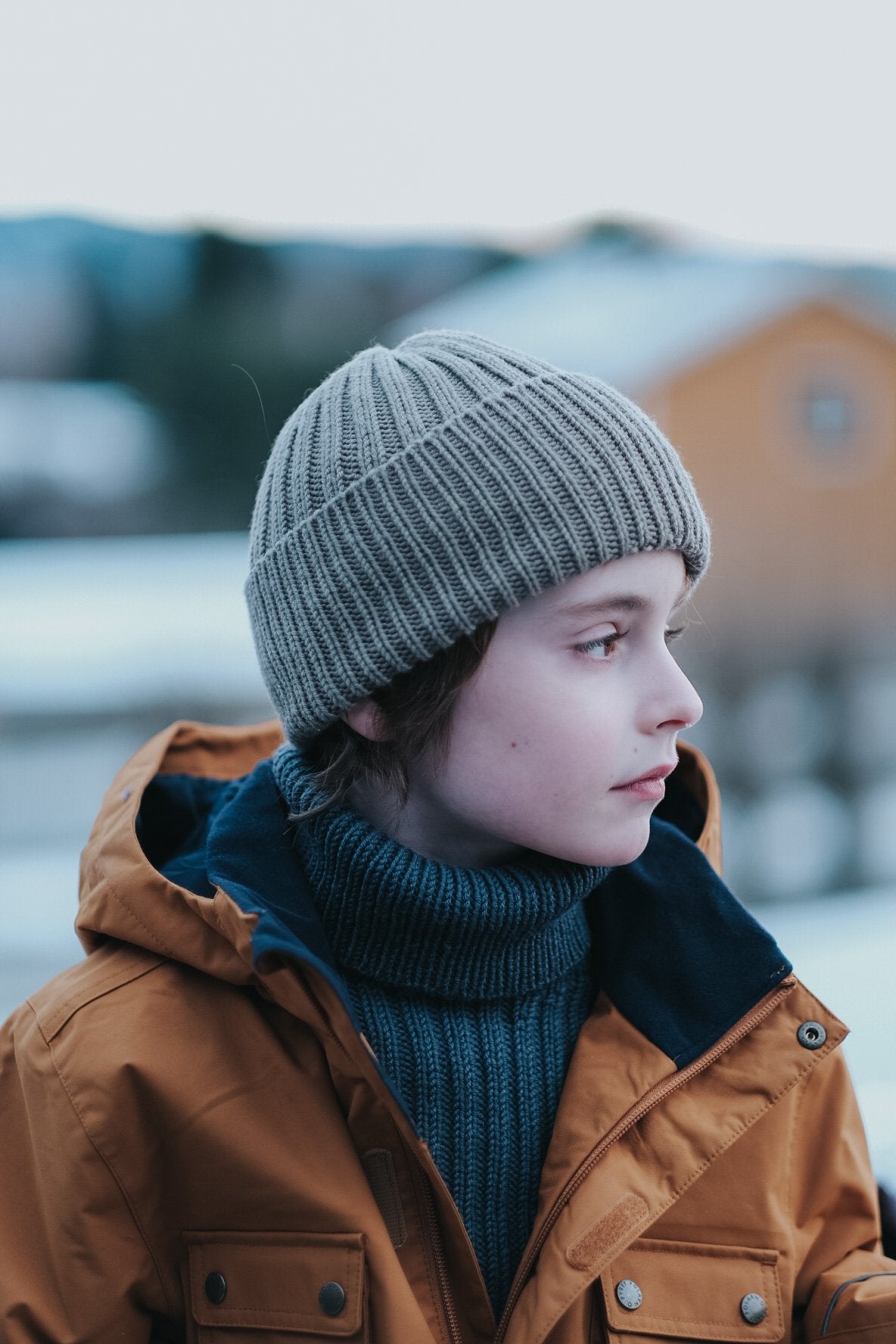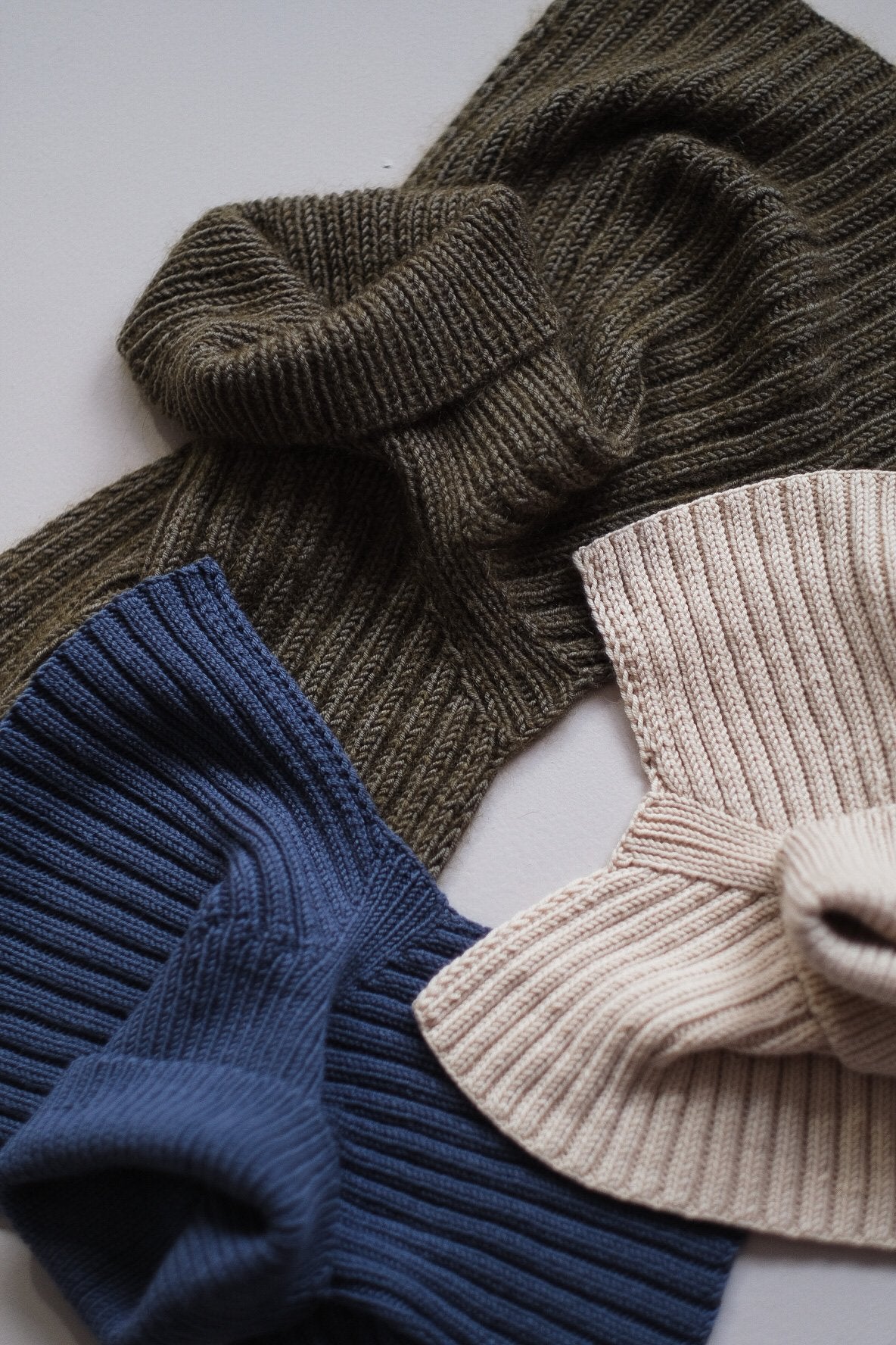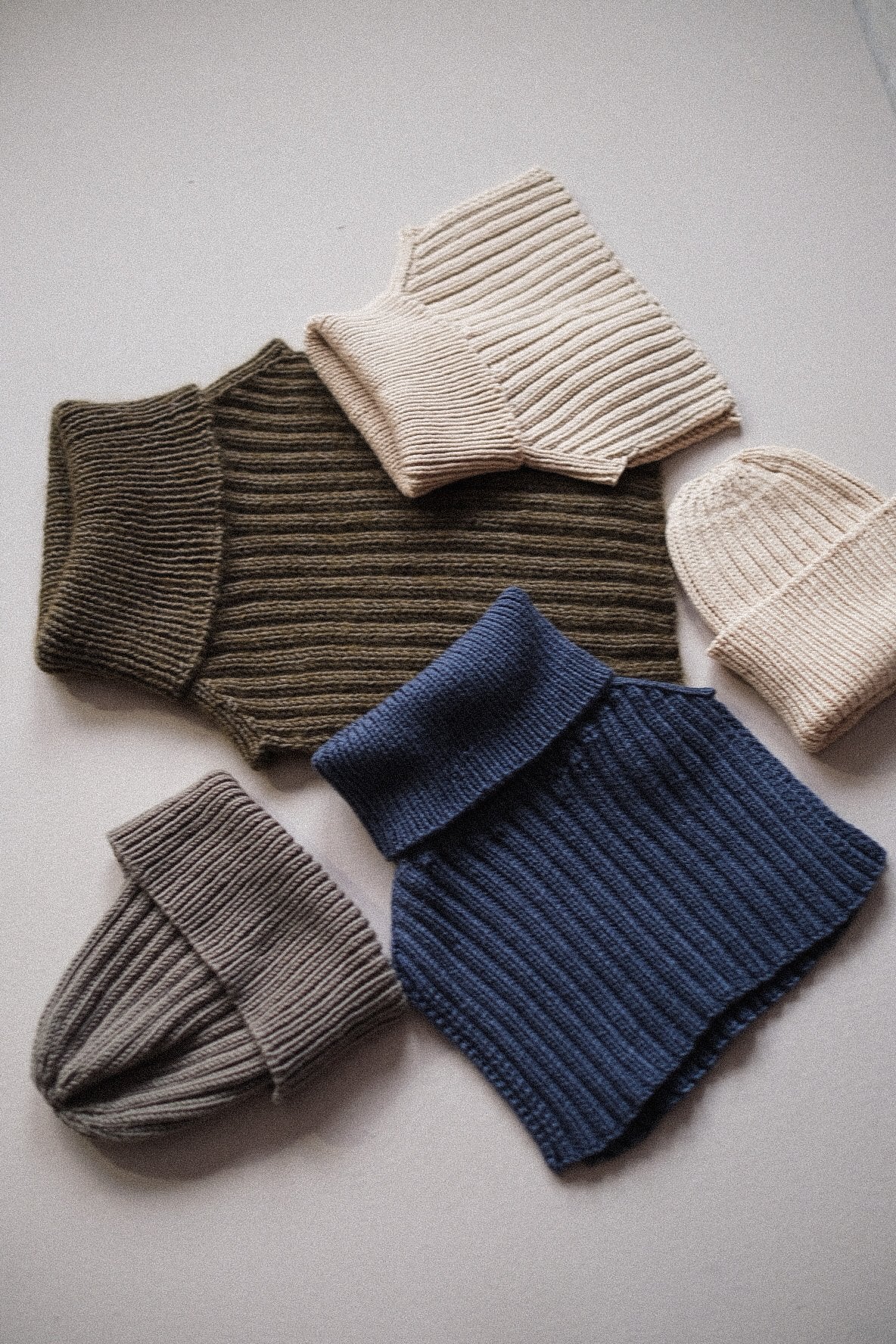 Strikkefasthet: 26 m = 10 cm på p 3,5 mm i vrangbord (2r, 2vr)