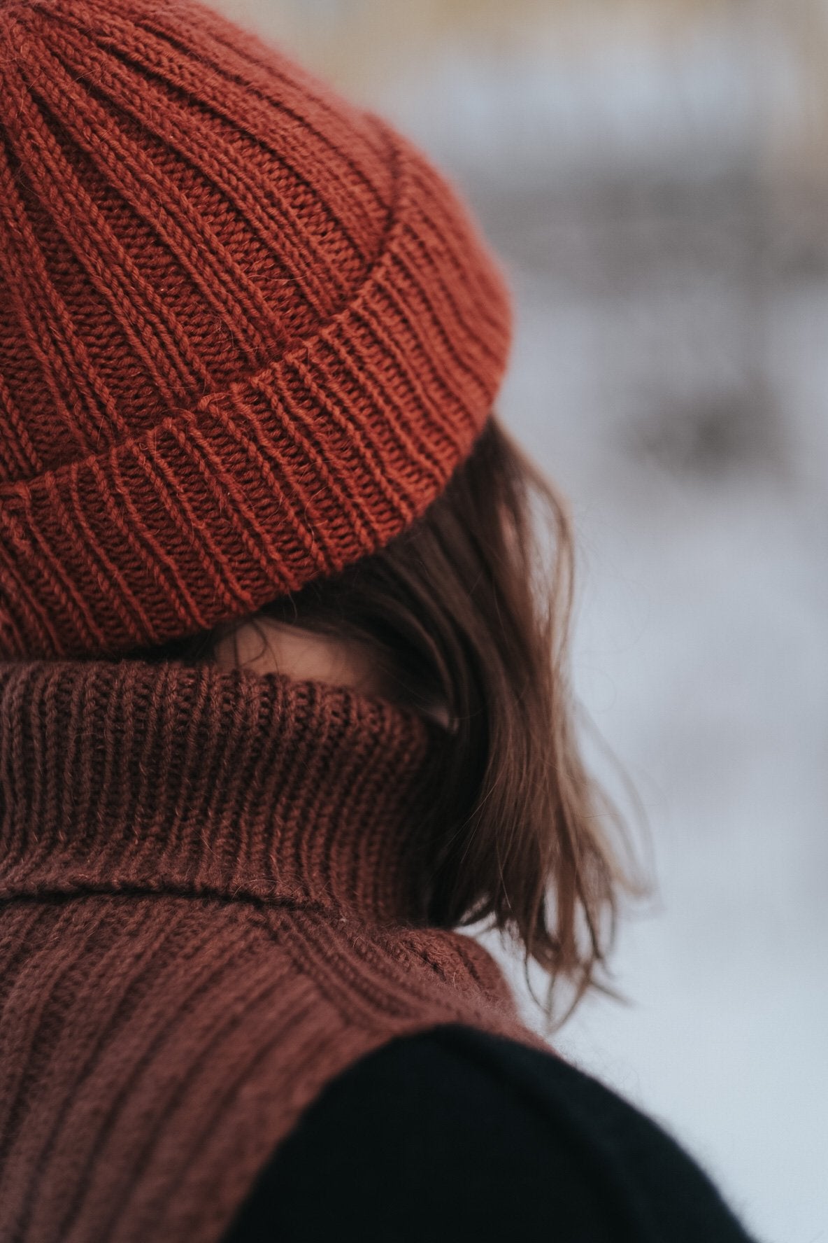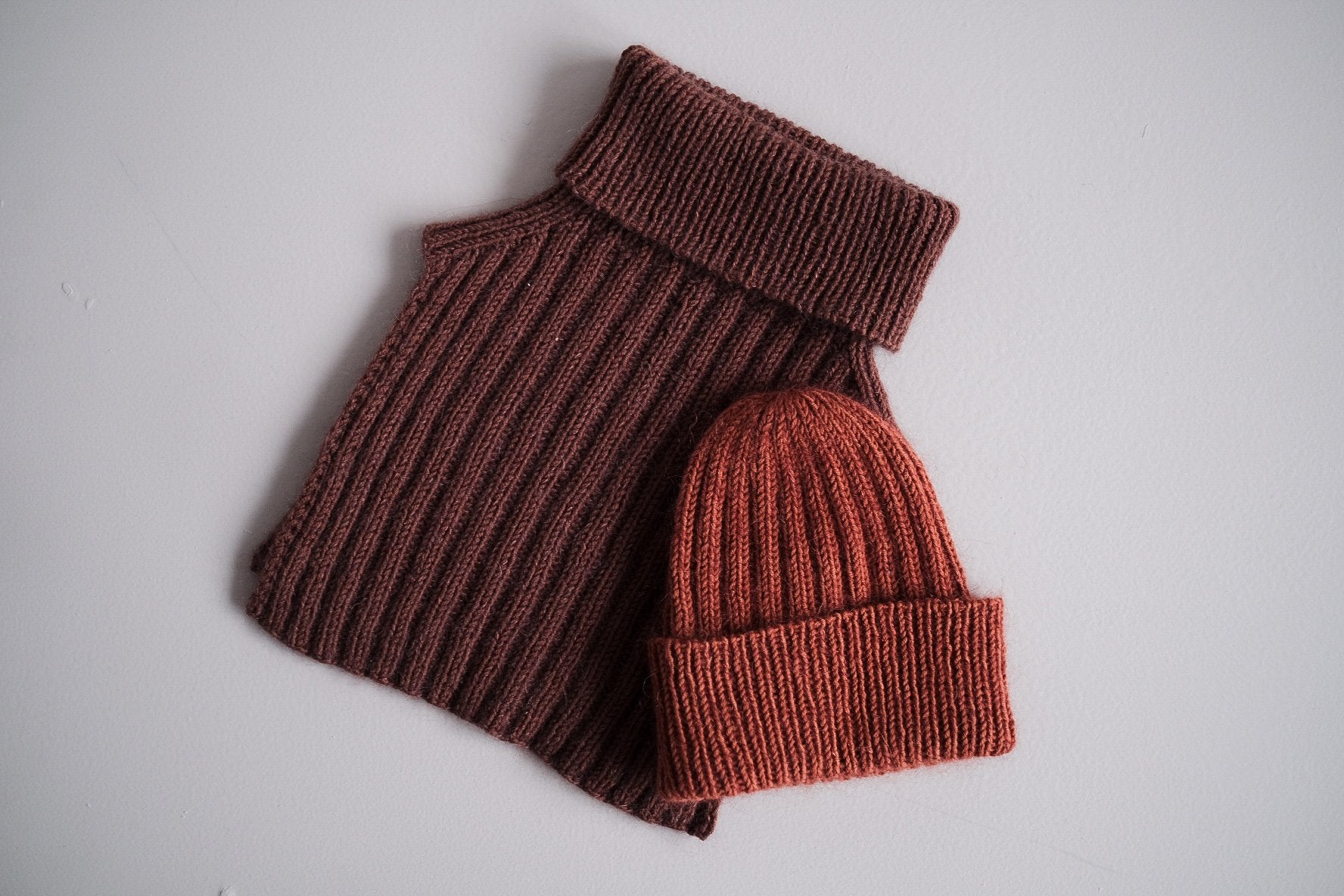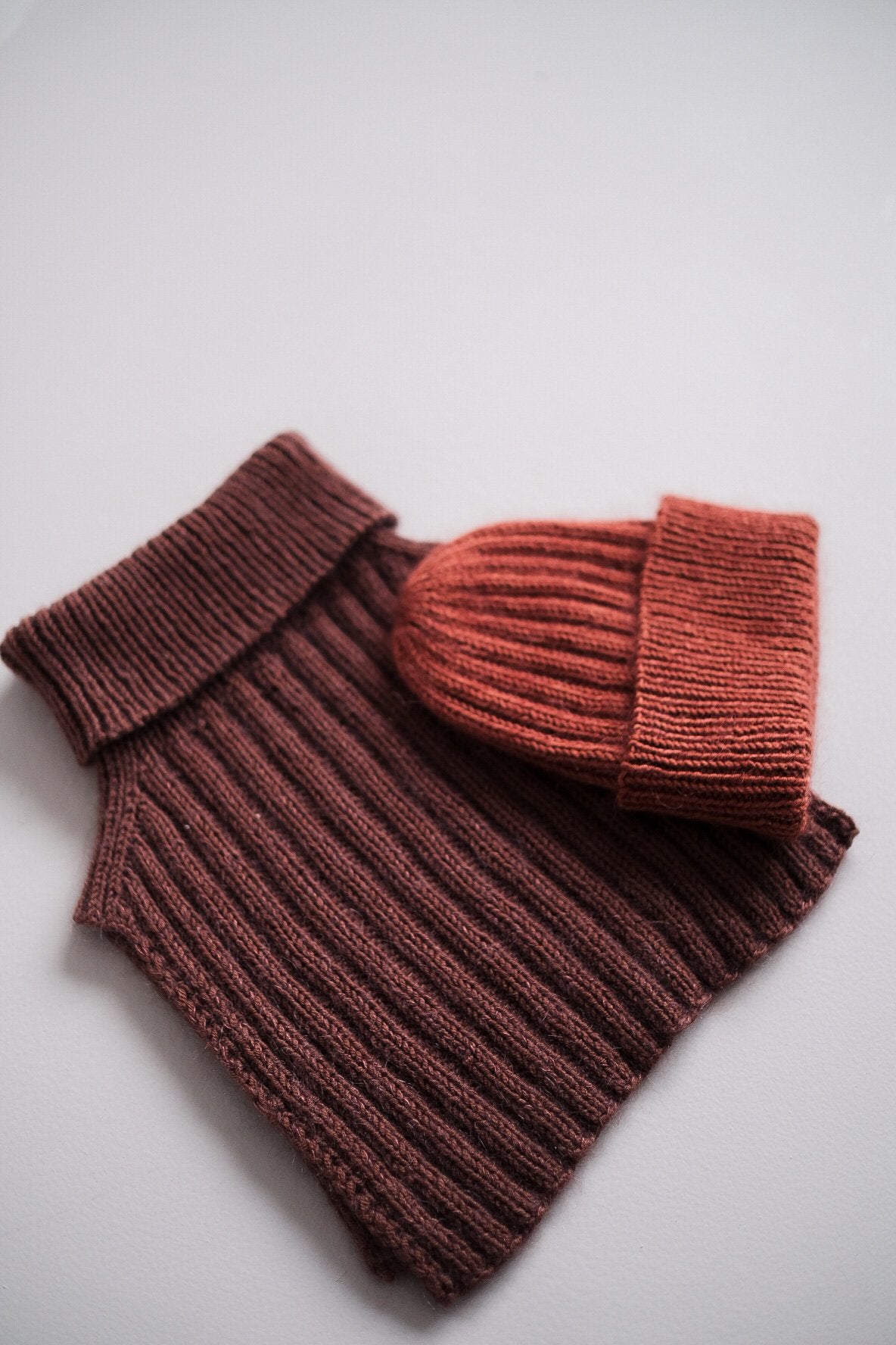 Strikkefasthet: 22 m = 10 cm på p 5 i vrangbord (2r, 2vr)