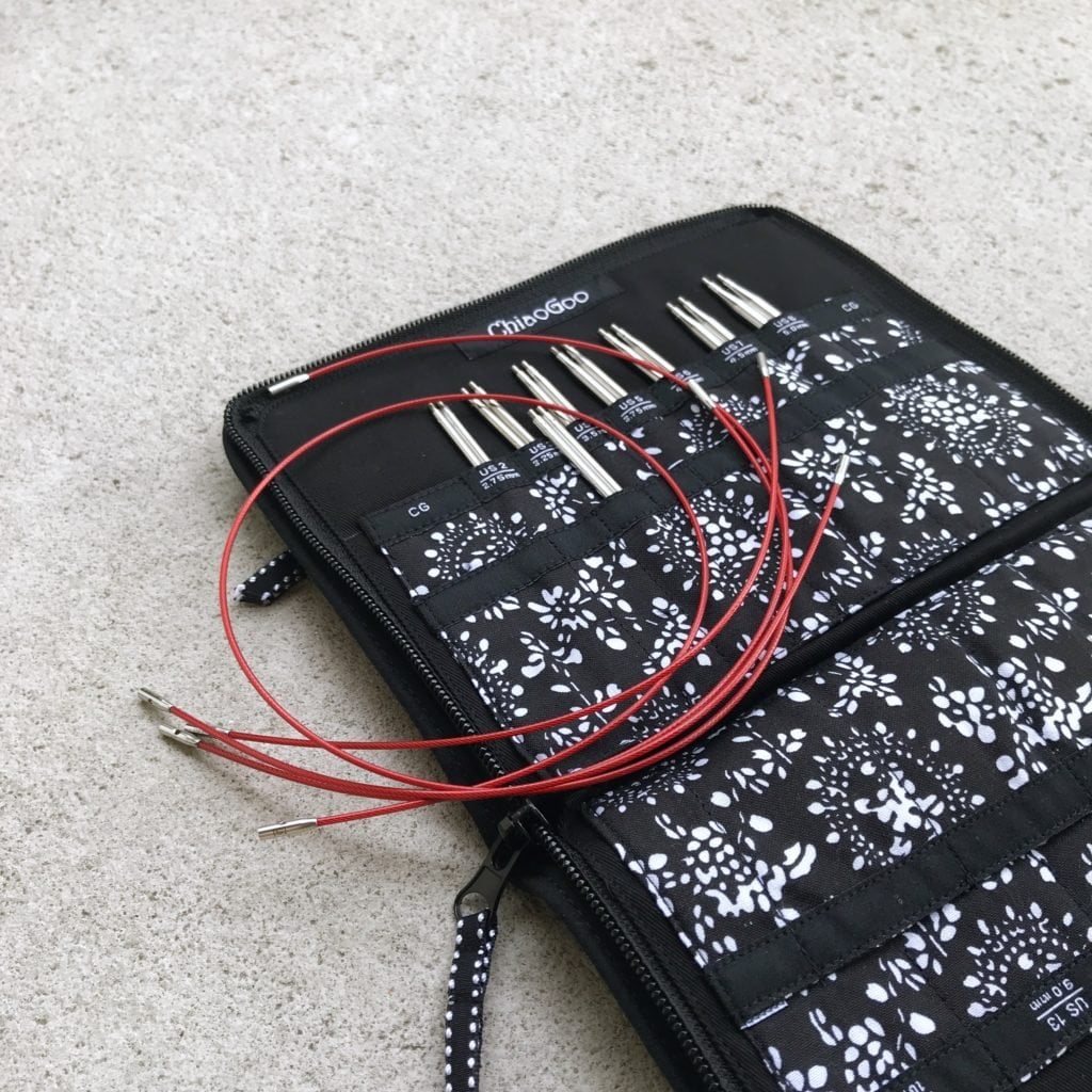 Sett med utskiftbare rundpinner fra ChiaoGoo. ChiaoGoo har fantastiske strikkepinner i kirurgisk stål med en vaier som ikke krøller seg, perfekt for magic loop!