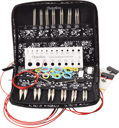 Sett med utskiftbare rundpinner fra ChiaoGoo. ChiaoGoo har fantastiske strikkepinnger i kirurgisk stål med en vaier som ikke krøller seg, perfekt for magic loop!