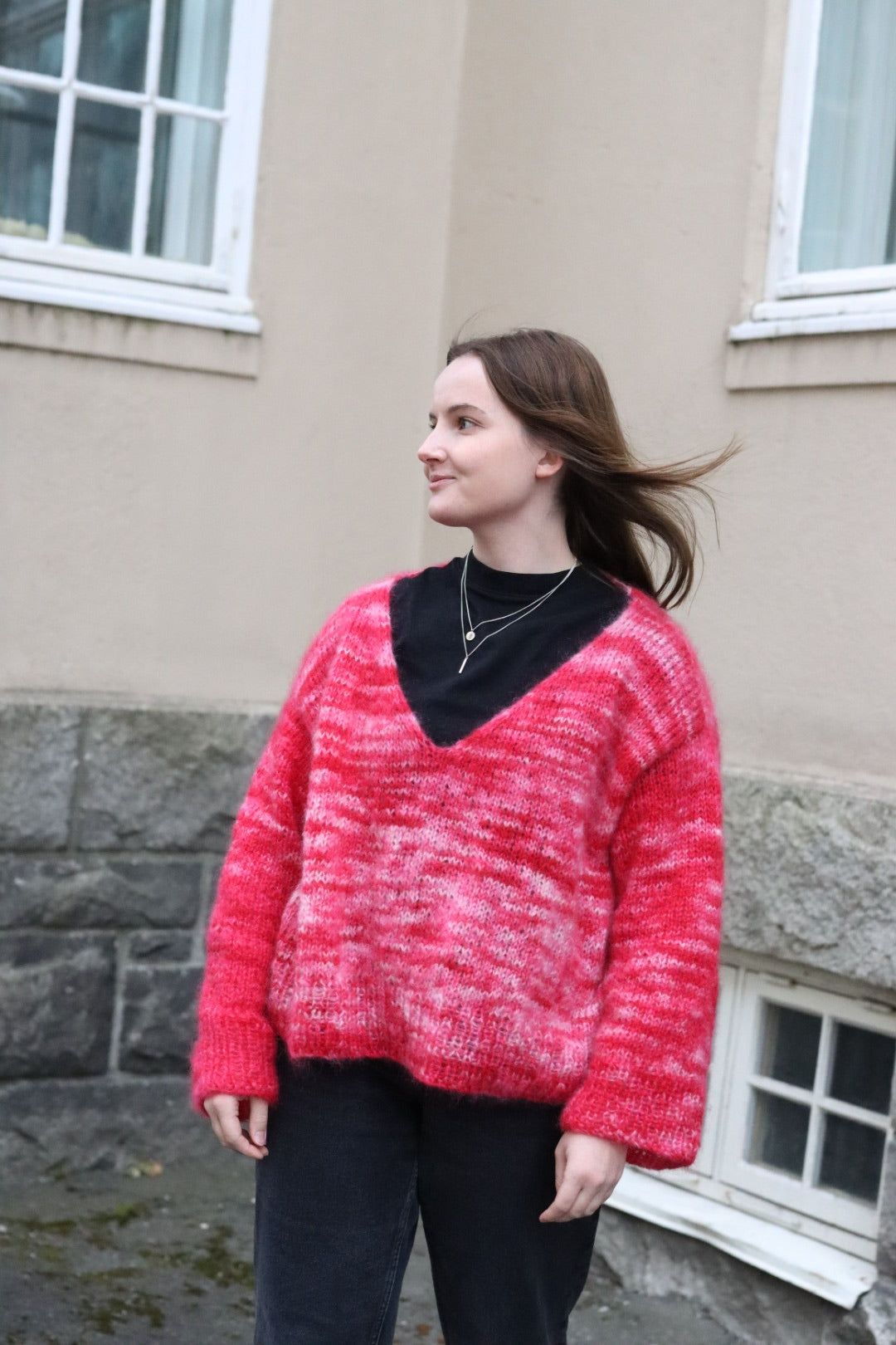 Chunky V sweater er en kjappstrikket og digg genser med løs passform og vide ermer. Fin med en høyhalset genser eller kanskje en kljole under? Denne passer til mange anledninger og er sånn perfekt varm!