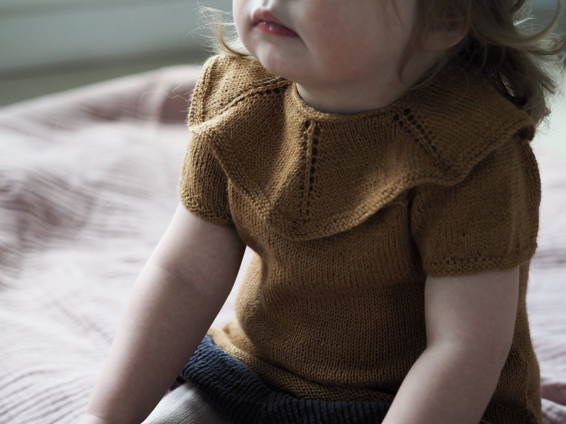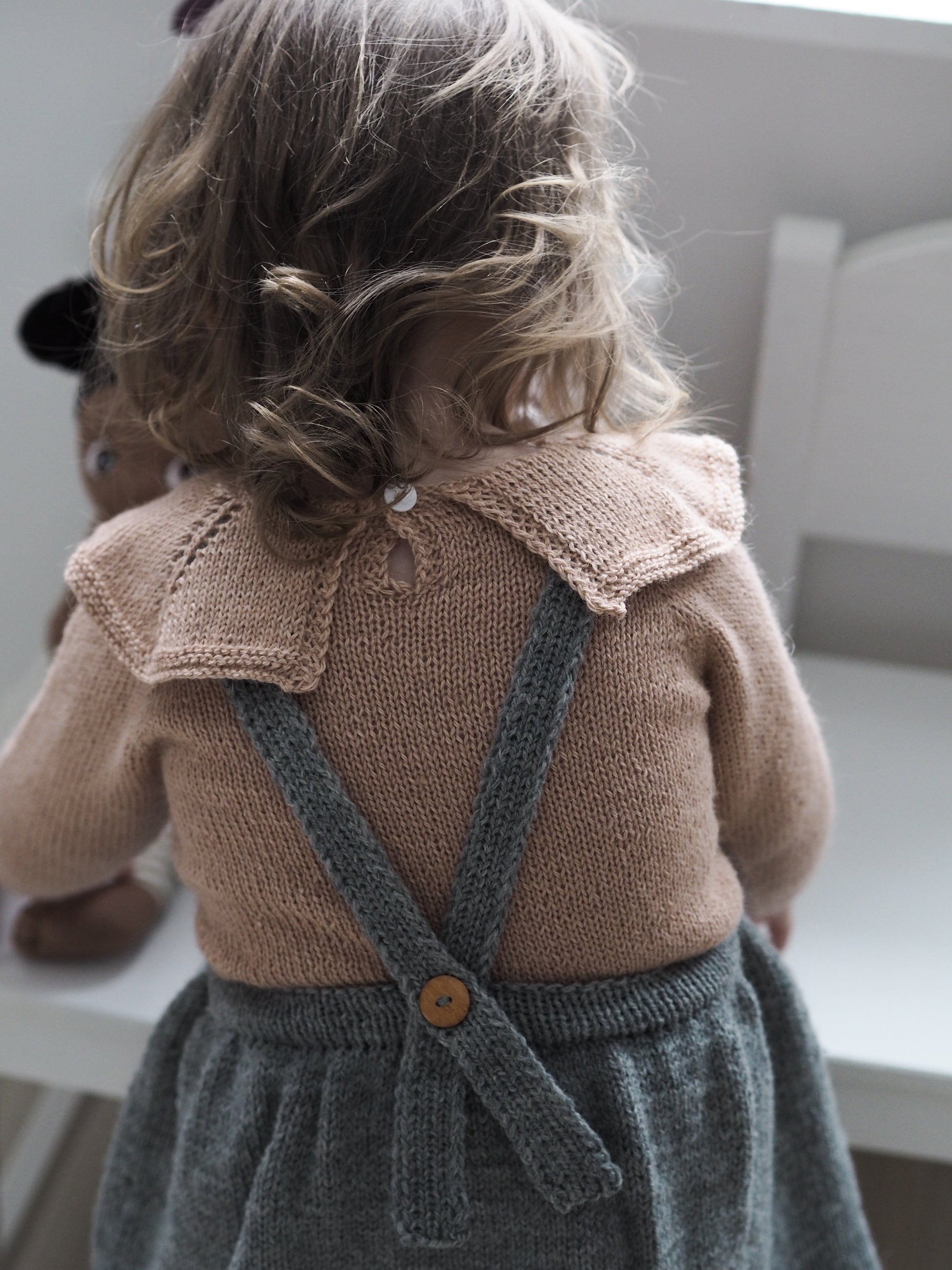 Blusen strikkes ovenfra og ned med raglanøkninger. Man kan selv velge om man vil ha korte eller lange ermer og utsvingt eller rett bol.