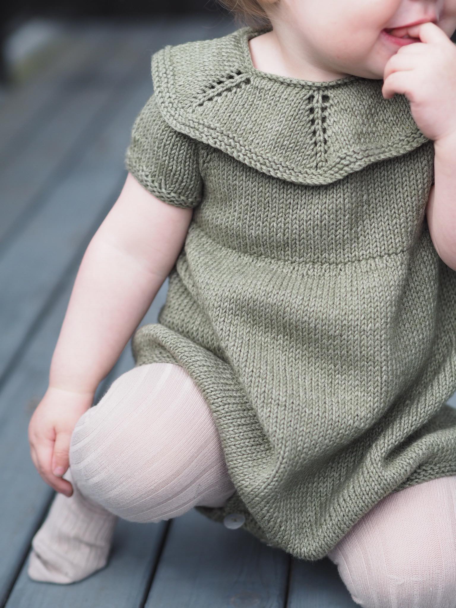 Claradrakt er en kjappstrikket drakt som strikkes ovenfra og ned med raglanøkninger. Kragen strikkes til slutt ved å plukke opp masker i halskanten.