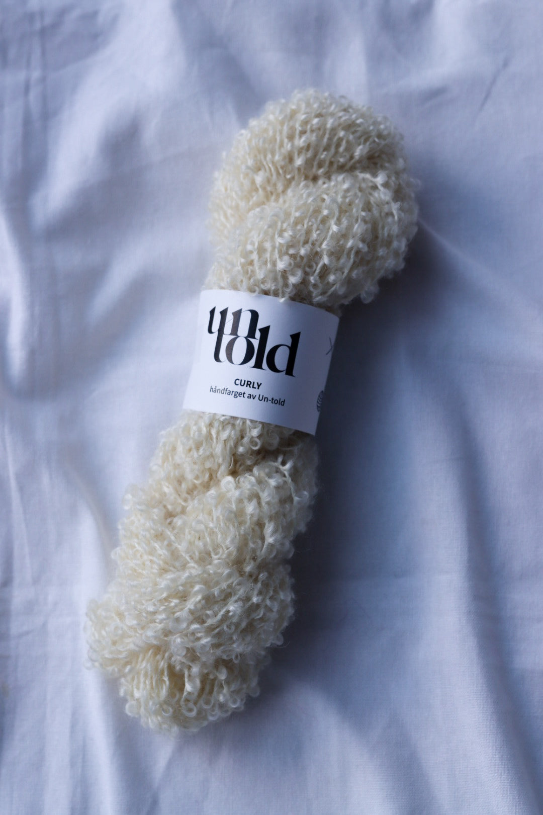 Curly Bouclé er mykt, glansfullt og deilig håndfarget Teddygarn! Garnet er ufarget i naturfarge.