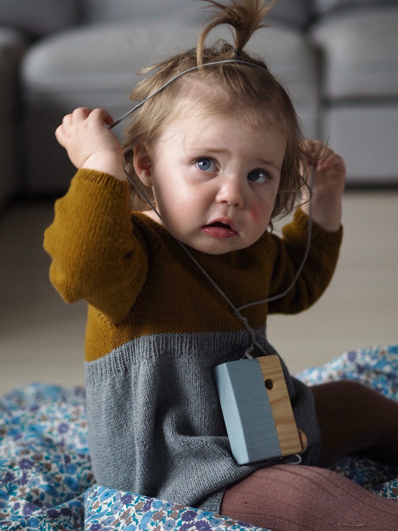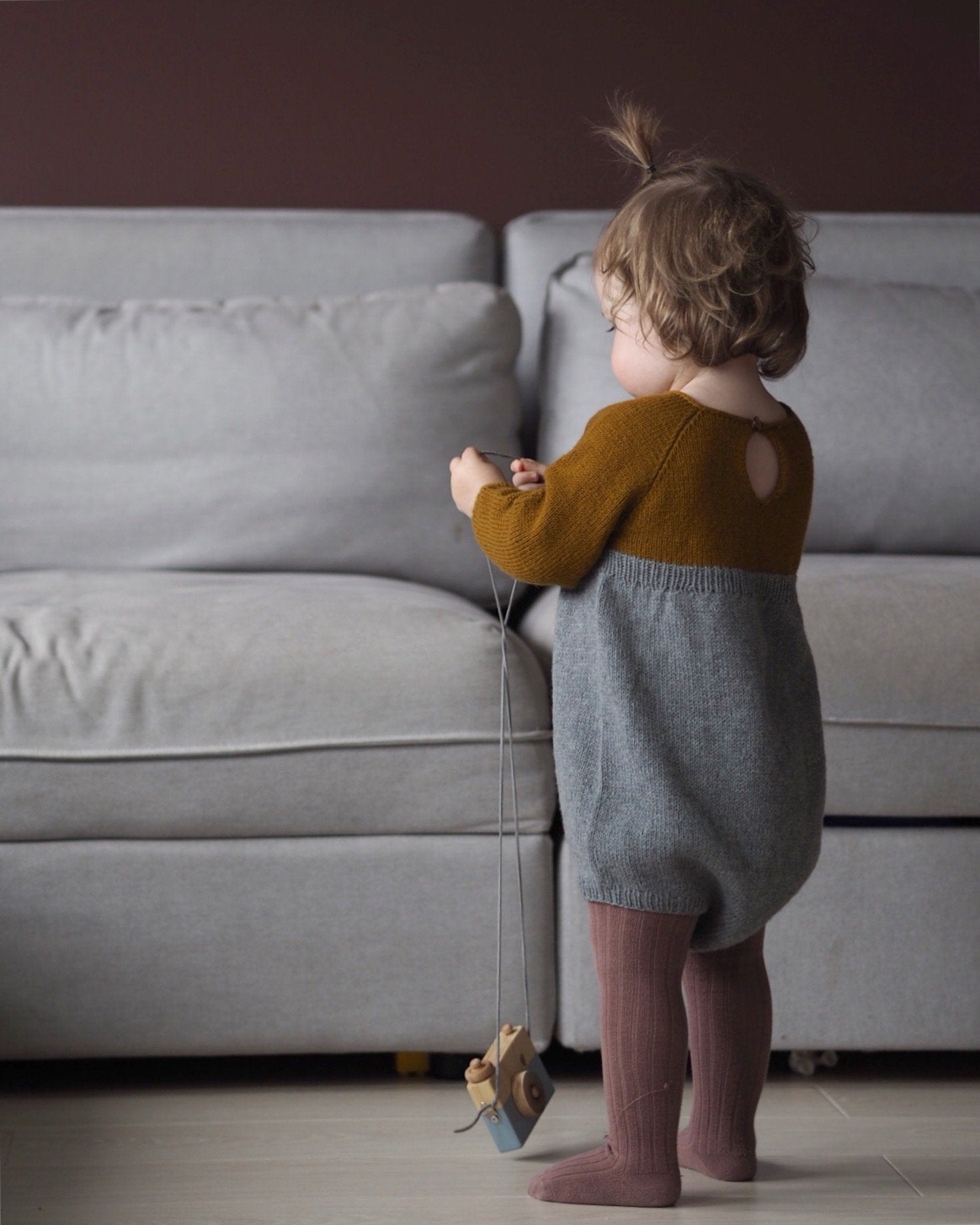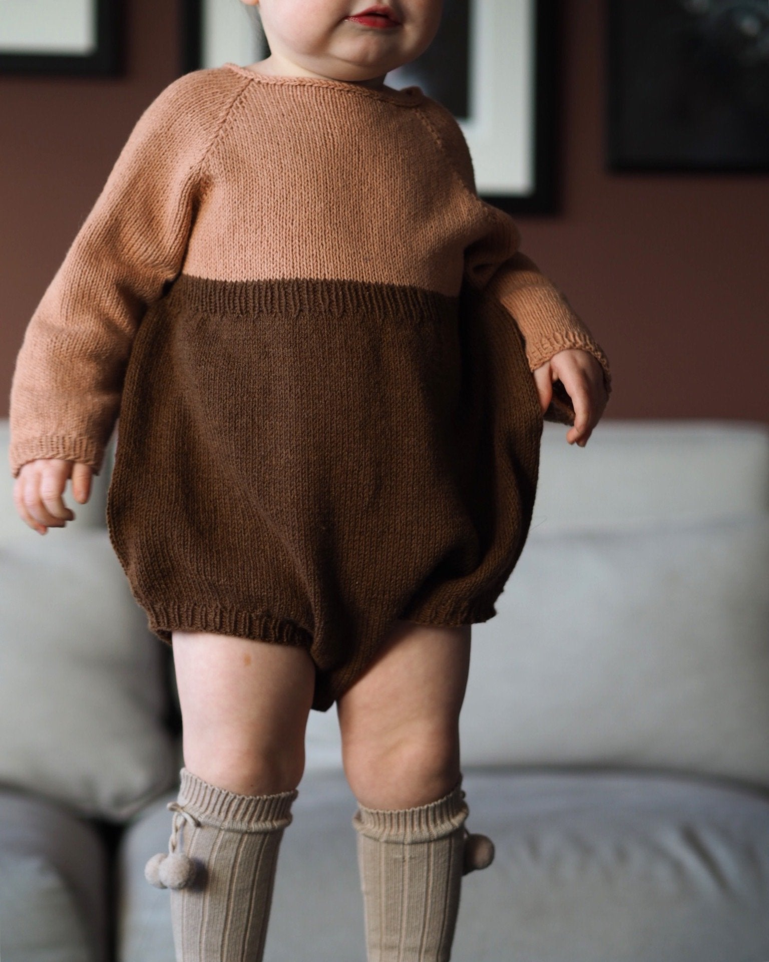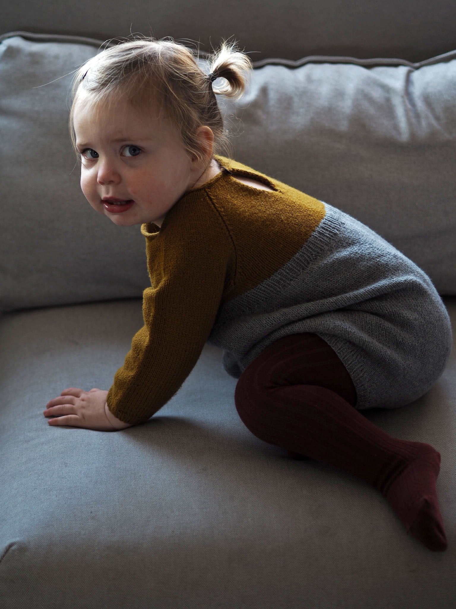 Edithdrakt er en myk og lett bukse som passer alle kjønn likt. Den er strikket nedenfra og oppover med raglanfellinger og i-cord-kant rundt halsen.