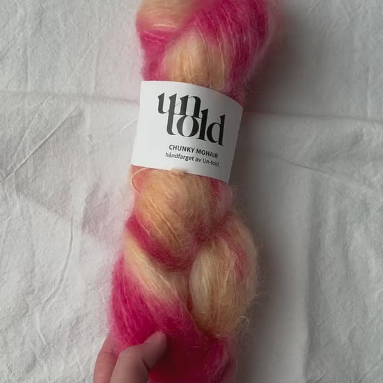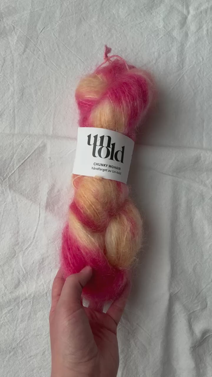 Un-told Chunky mohair er myk og fluffy Non-superwash fat mohair! Garnet er håndfarget av Un-told. Chunky mohair kommer opprinnelig fra Sør-Afrika på gårder hvor mulesing ikke foregår.