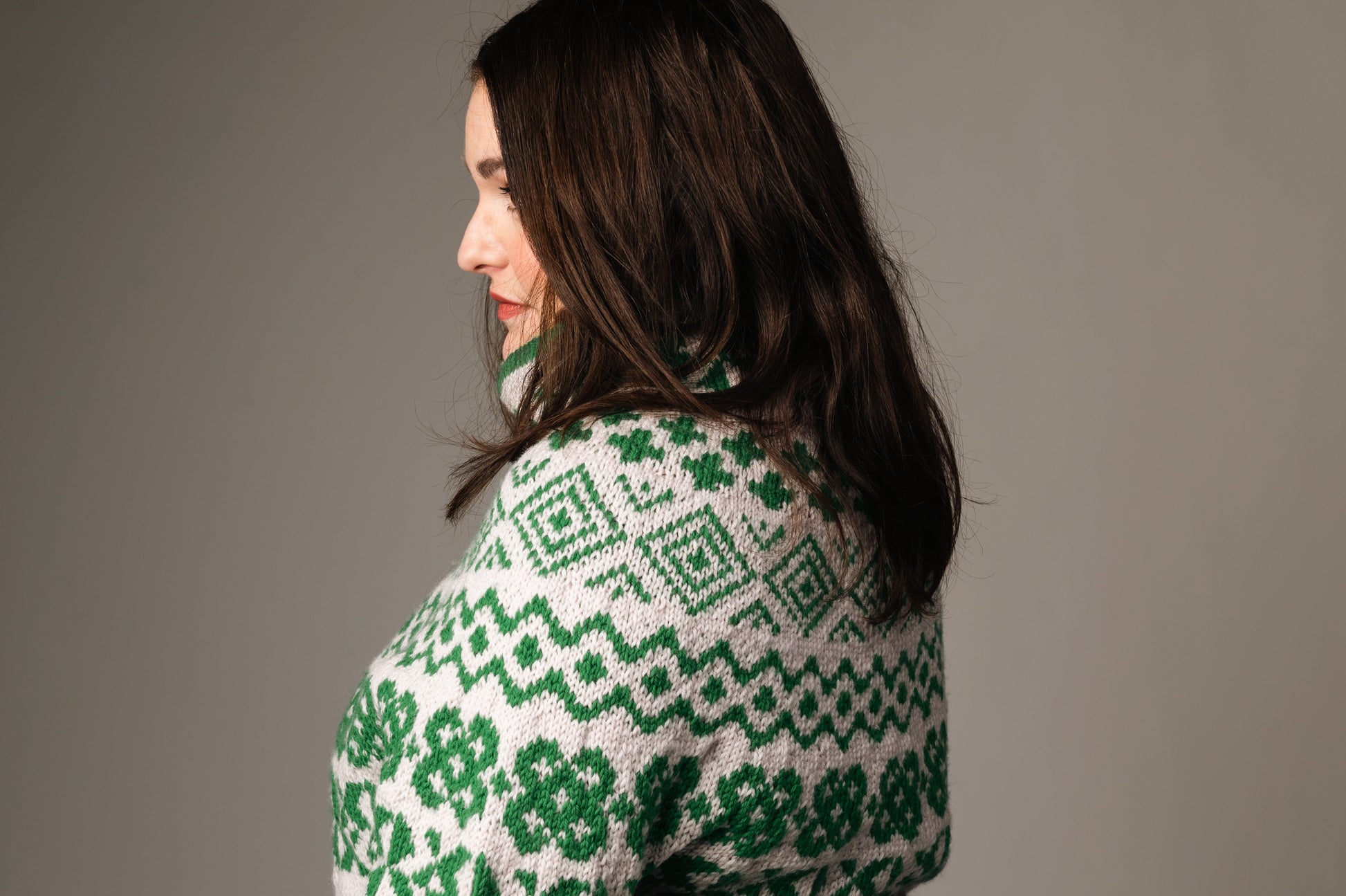 Vårens feteste statementgenser designet av Stine Erikstad spesielt for Un-Told! Den er inspirert av kaleidoskopene som vi lekte med som barn, og her er det virkelig rom for både fargefest eller nedtonet mønsterstrikk – alt etter hva dine preferanser er. Bærestykket deles et stykke nedenfor armhulene, noe som gir et avslappet og kult uttrykk, og dersom du ønsker en mer oversized genser kan du strikke bolen lengre – men da må du huske å bestille litt ekstra garn.