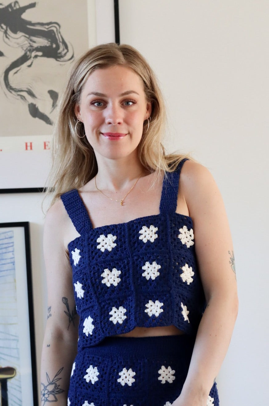 Ellinor Topp er en basic og sommerlig topp bestående av heklede bestemorruter. Den hekles i Cotton Merino som gjør den deilig og sval til varme sommerdager. Rutene består av to farger, men her kan du leke deg med ulike kombinasjoner og bruke restegarn! Ellinor topp passer perfekt sammen med Ellinor skjørt.