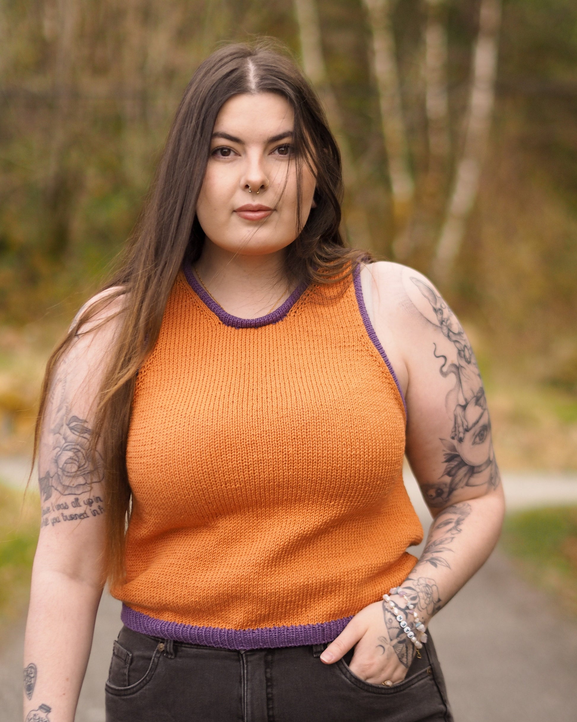 Un-told basic tank er akkurat så basic som du vil ha den! Strikk den med striper eller ensfarget etter eget ønske. Den er ettersittende, formflatterende og cropped i livet. Siden den strikkes ovenfra kan den med fordel prøves på underveis for den perfekte lengden til akkurat deg!