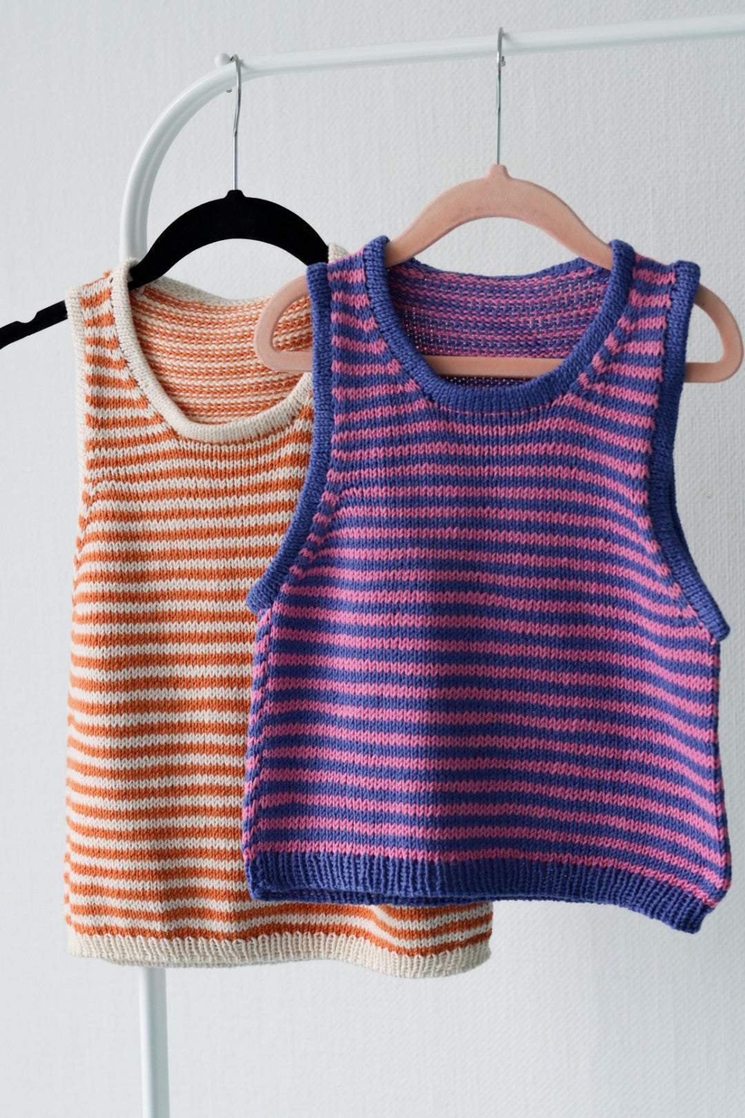 Toppen på bildet er strikket i Bubblegum og Vivid Violet.