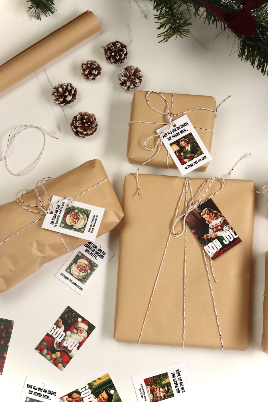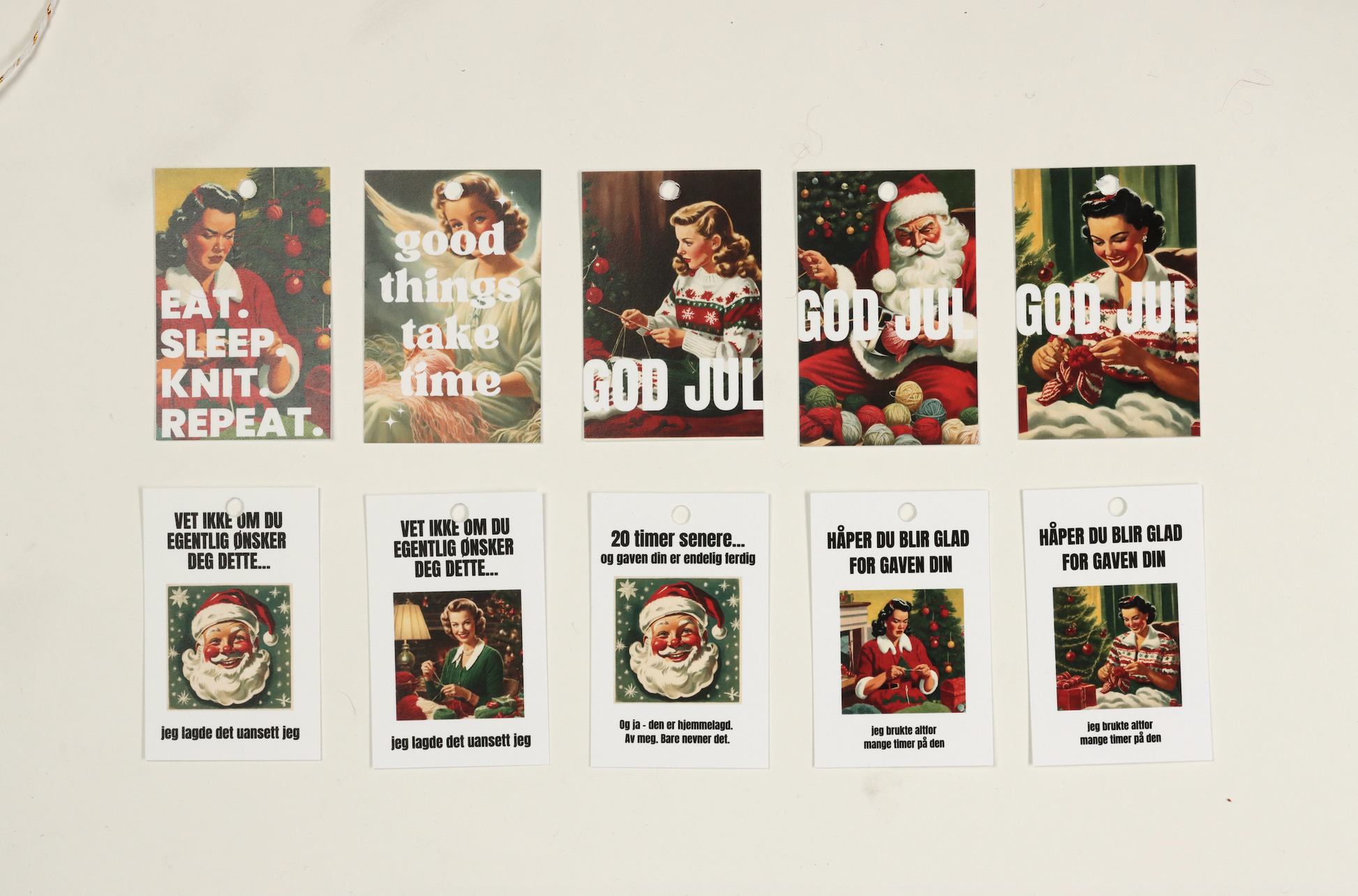 Un-told til-fra lapper selges i pakke med 10 assorterte motiver. De kommer både på bokmål og selvfølgelig på trøndersk. Disse er designet av oss og spesiallaget for dere som lager julegavene selv. En pakke koster 79,-