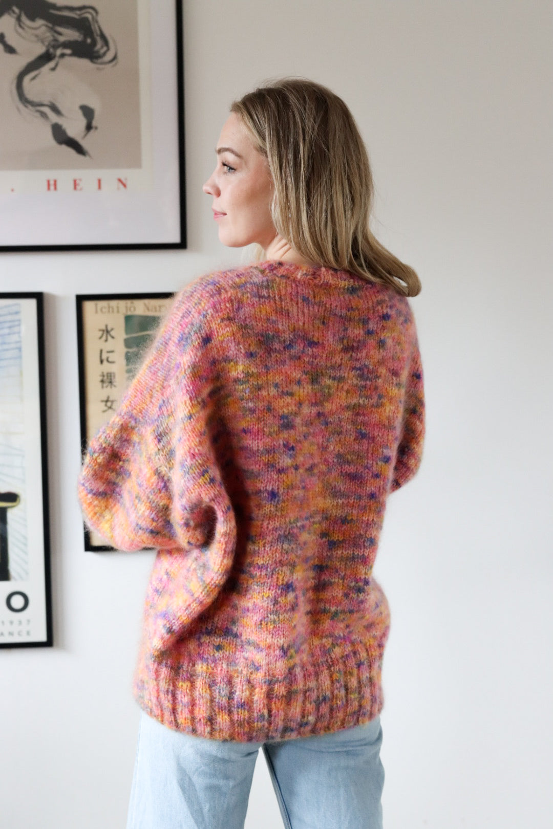 Hug me sweater er en oversize og deilig genser i myk og fluffy Chunky mohair. Siden genseren strikkes ovenfra og ned kan den med fordel prøves på underveis for å oppnå ønsket lengde!