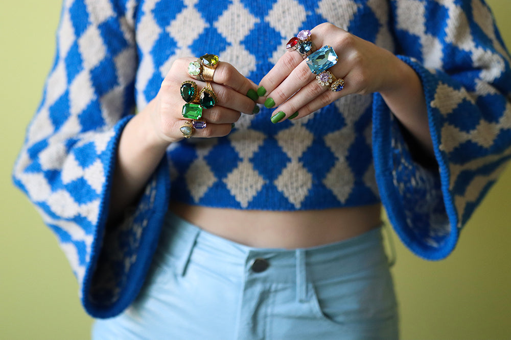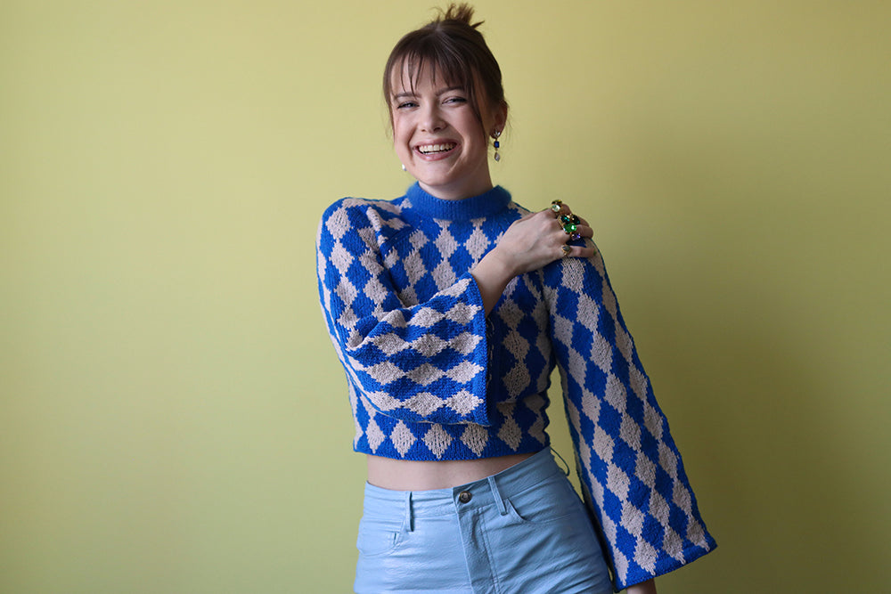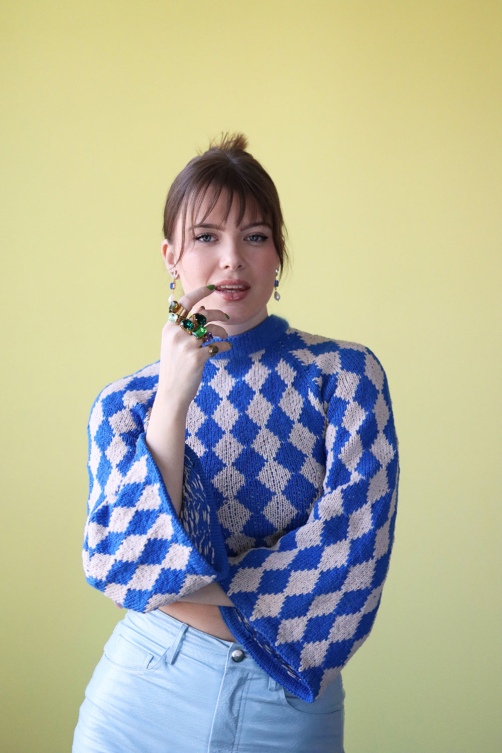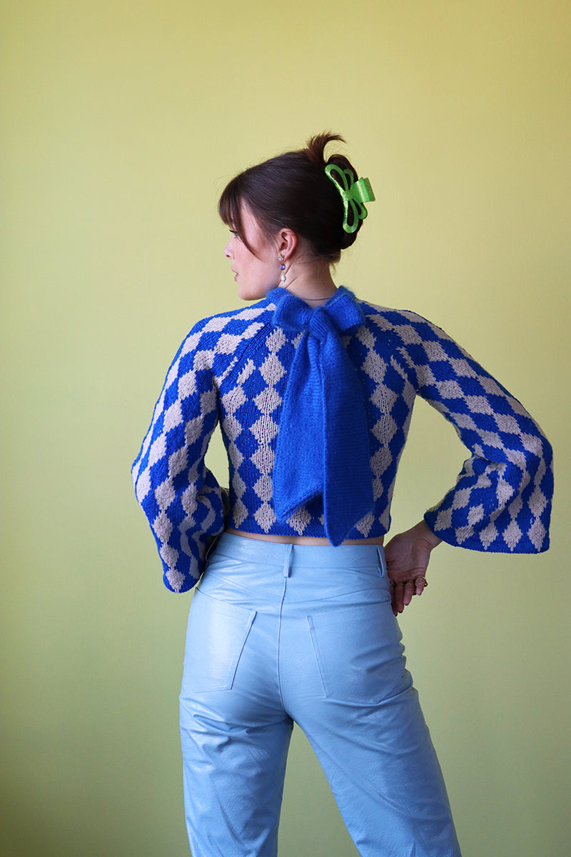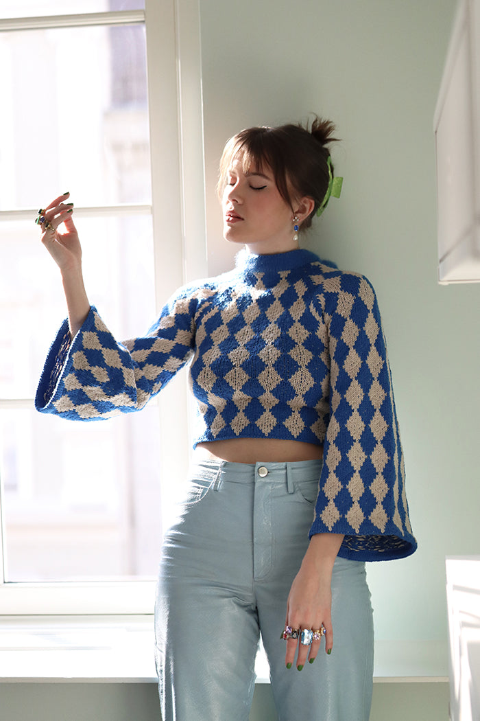 Mønsteret på genseren er inspirert av en moderne hoffnarr, hvor inspirasjonen er hentet fra de morsomme kostymene middelalder hoffnarrer gikk med. Sløyfen er med på å gjøre genseren til en fest og er inspirert av 80-talls kontormote. Genseren strikkes nedenfra og opp hvor bolen og ermene på genseren strikkes i dobbel tråd Light merino, sløyfen strikkes i 1 tråd Light Merino og 1 tråd Pure Silk Mohair.