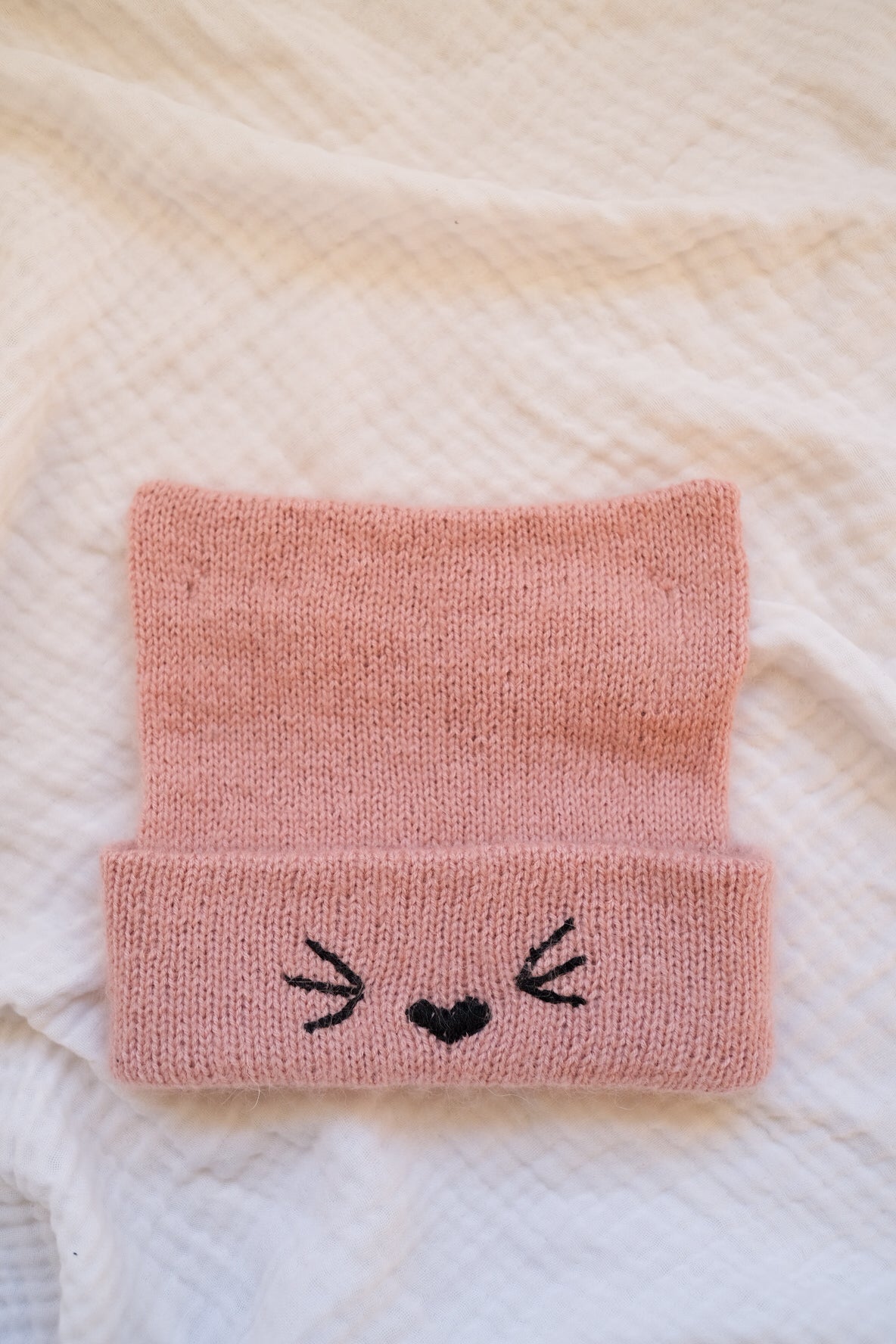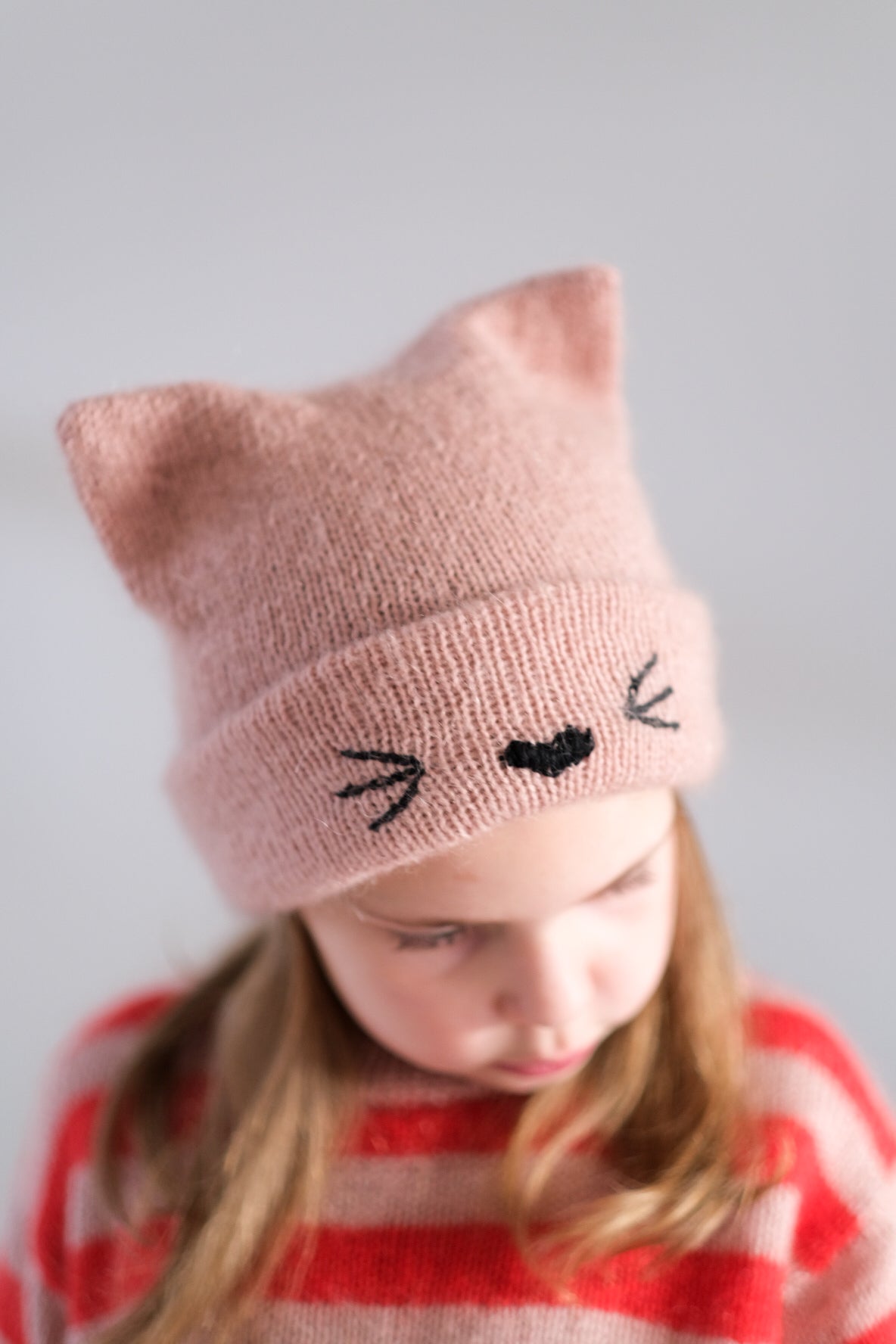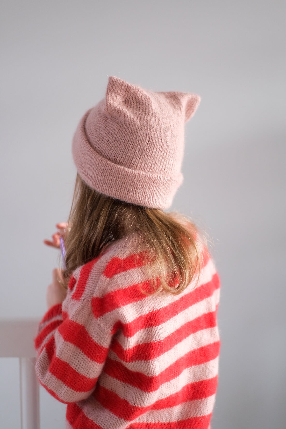 Kittylue er en søt lue med katteører. Luen har en trippel oppbrettskant som varmer godt rundt ørene. Katteørene på toppen lages enkelt ved hjelp av noen få sting.