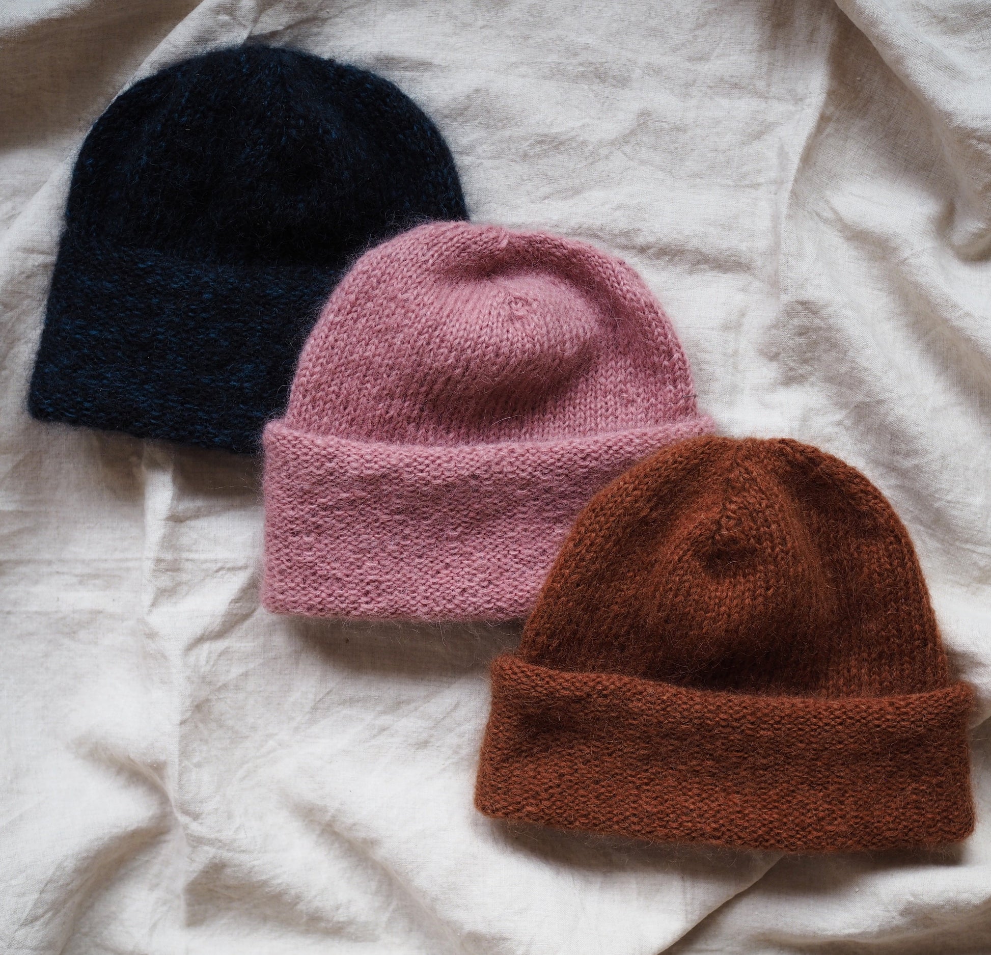 Kystlue er en enkel og kjappstrikket lue med trippel tråd mohair. Myk, varm og lett som en fjær!