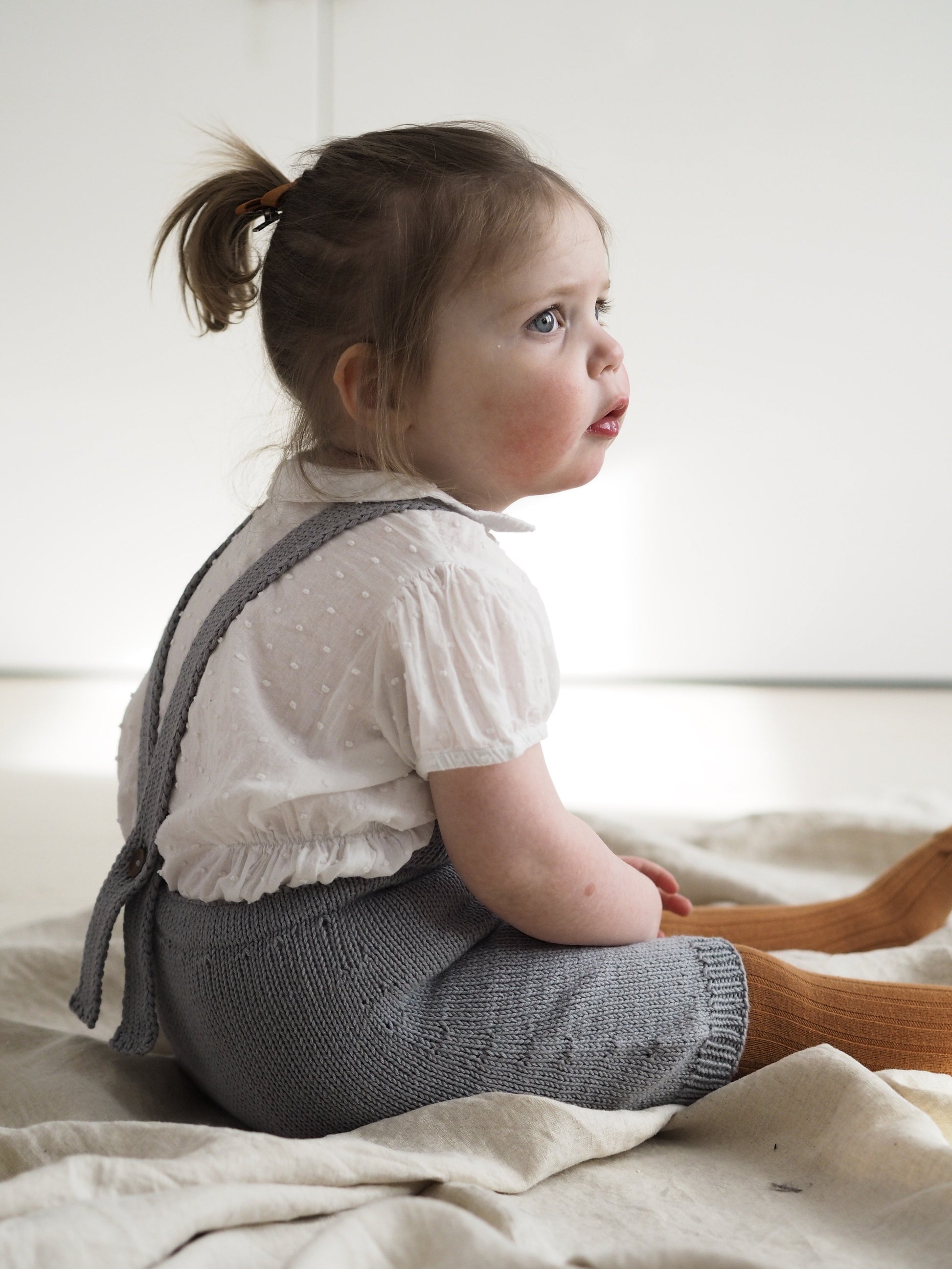 Lekeshorts er en lett og kjappstrikket shorts som strikkes ovenfra og ned. Shortsen strikkes ferdig først før du plukker opp masker til selen og strikker den til sist. Du velger selv om du strikker den med eller uten sele.