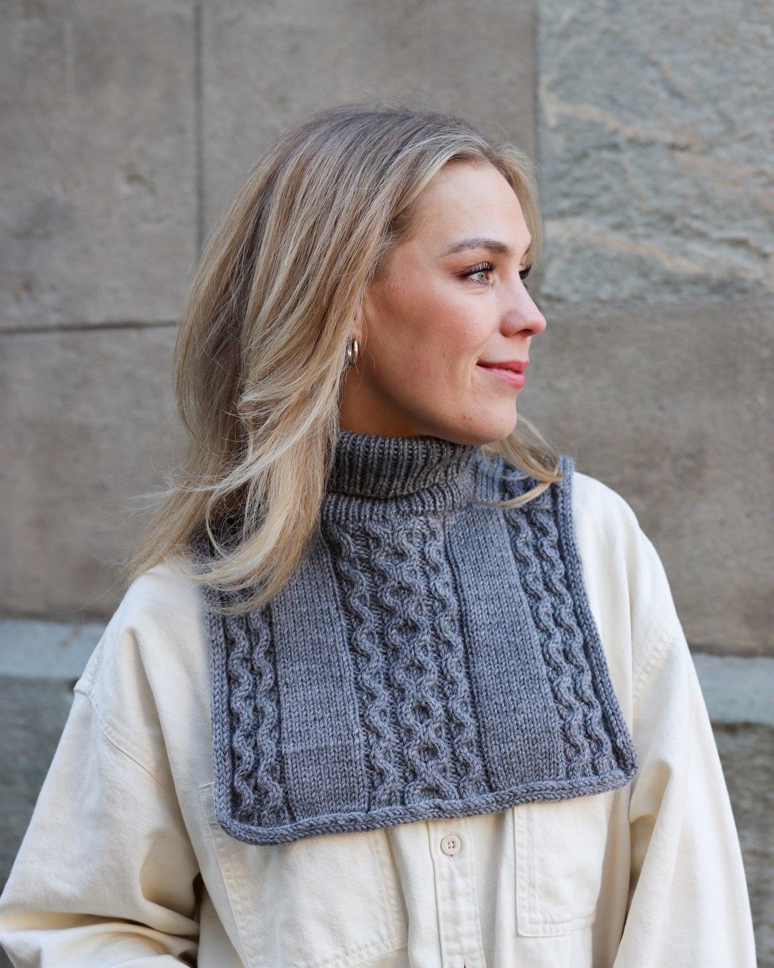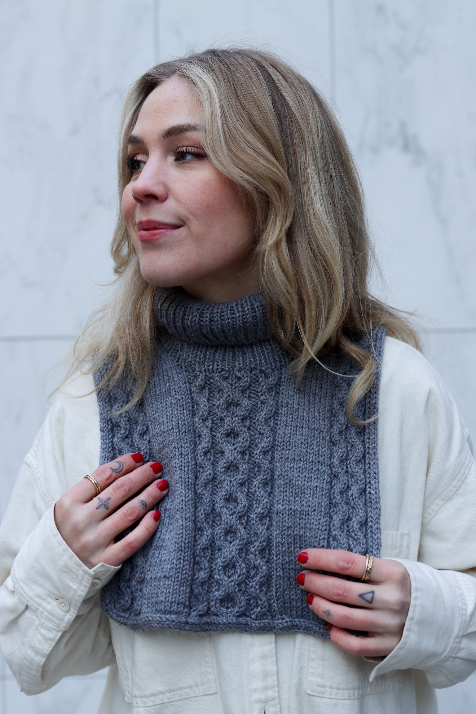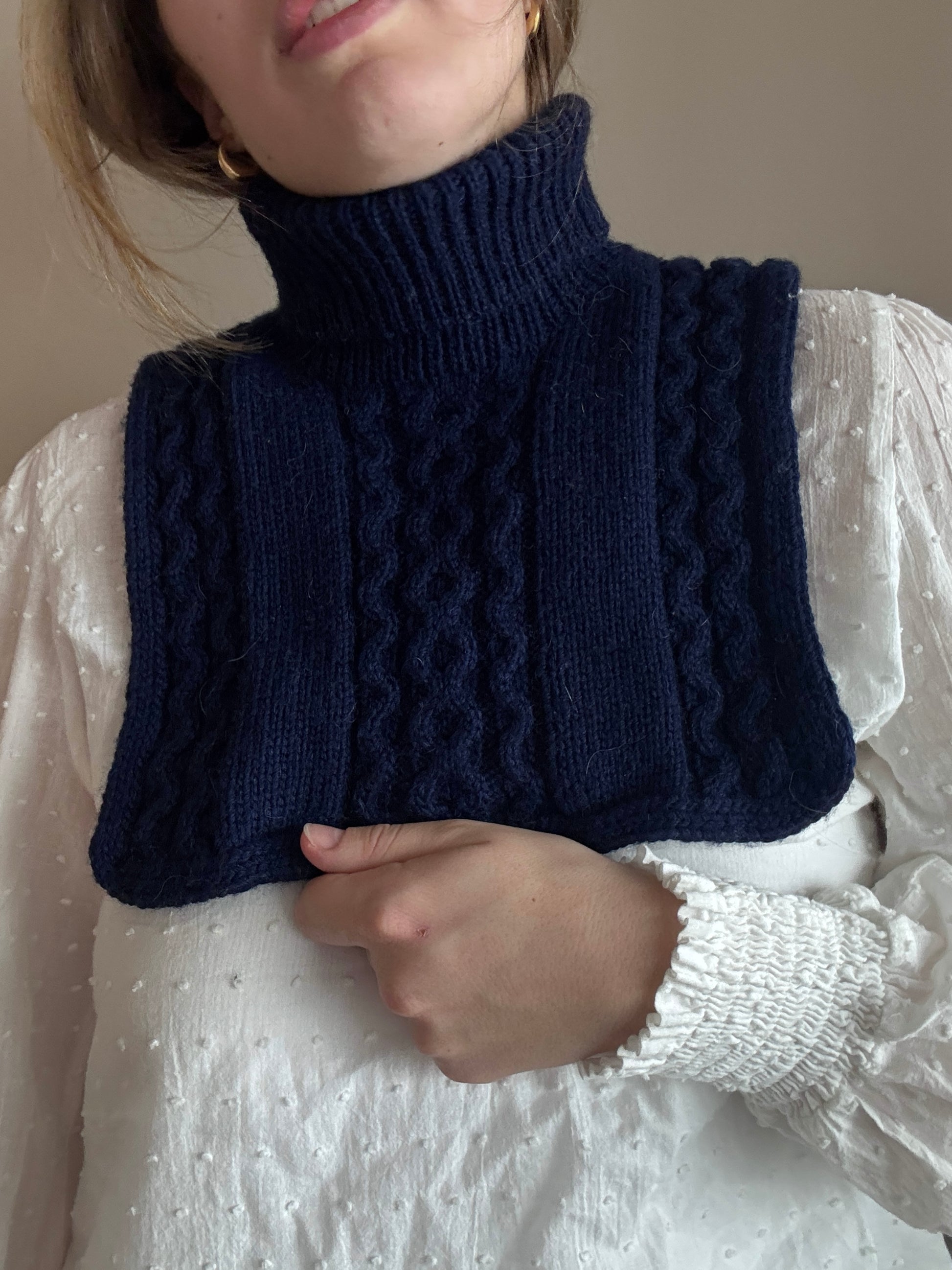 Mamba Neck, designet av Ullen Knitwear for Un-told, er strikket i 100% ren Supreme Wool. Halsen er strikket ovenfra og ned, med en ryggdel i glattstrikk og diagram, og forstykker som formes med økninger. Forstykket strikkes identisk med bakstykket, og halsen avsluttes med en i-cord-kant og en vrangbord-stolpe for en delikat og eksklusiv finish. Den er pustende, slitesterk og utrolig myk – perfekt for kalde dager.