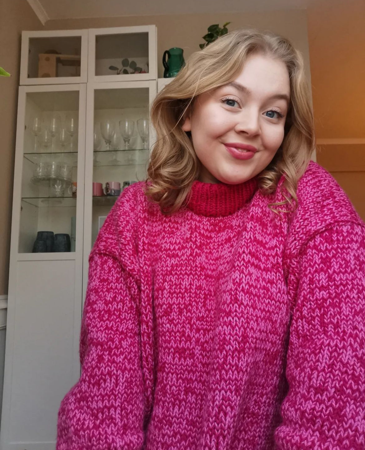 Genserene på bildene er strikket i fargene Jet Black og Hazelnut og Fuchsia og Pink Punch. Tusen takk for lån av bildet @knitby_solveig.