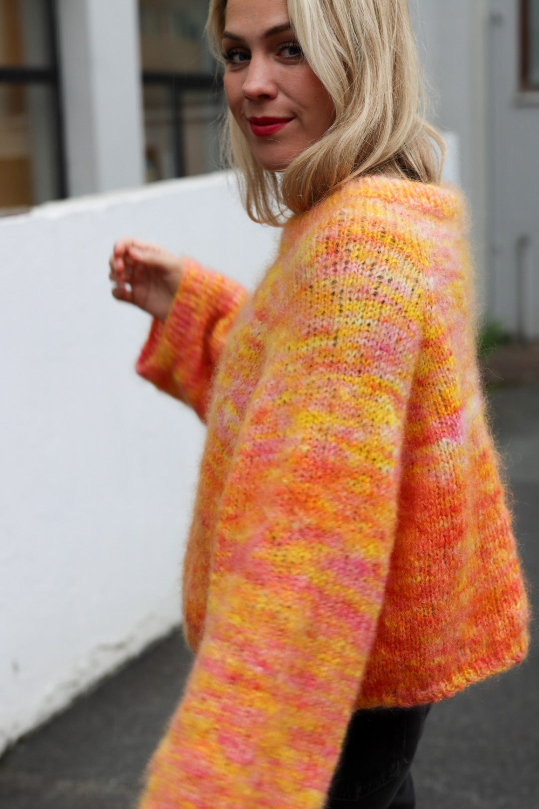 More mohair sweater er en enkel raglangenser strikket i Chunky mohair. Den har vendinger i halsen for å skape en fin halsutskjæring. Genseren strikkes ovenfra og ned og har en løs og ledig passform. Bærestykket deles et stykke nedenfor armhulene, noe som gir et avslappet og kult uttrykk. More mohair sweater strikkes i Un-told håndfarget Chunky Mohair!