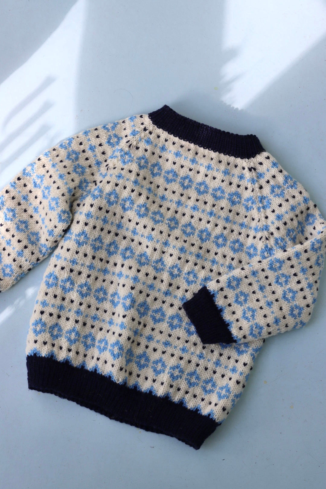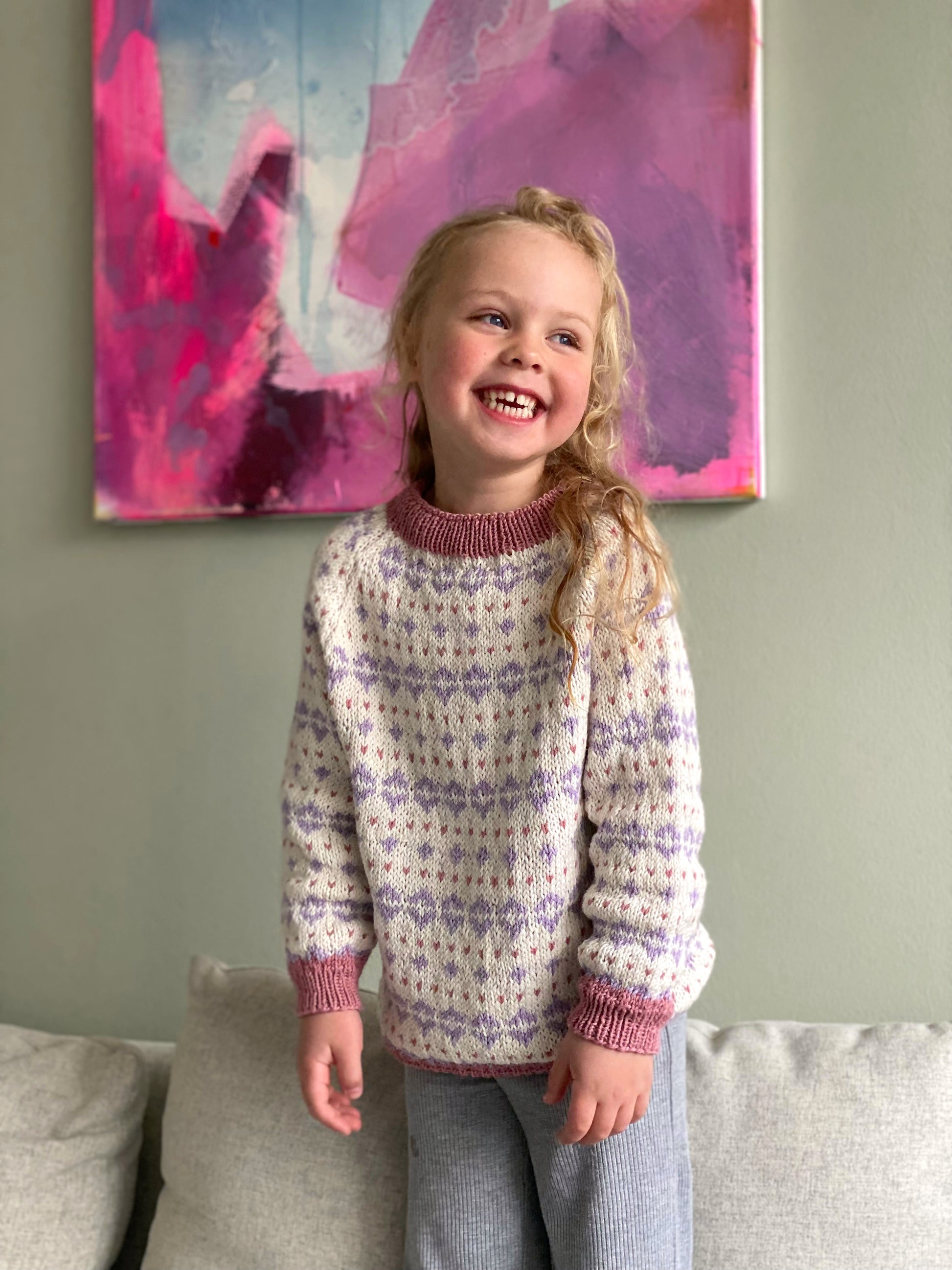 Noragenseren strikkes fra bunnen og opp, med raglanfelling. Kul genser med fin passform og mønsterrapporten lærer man seg kjapt!