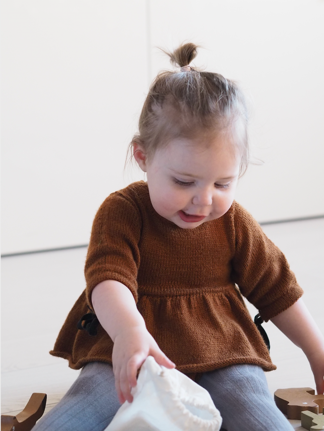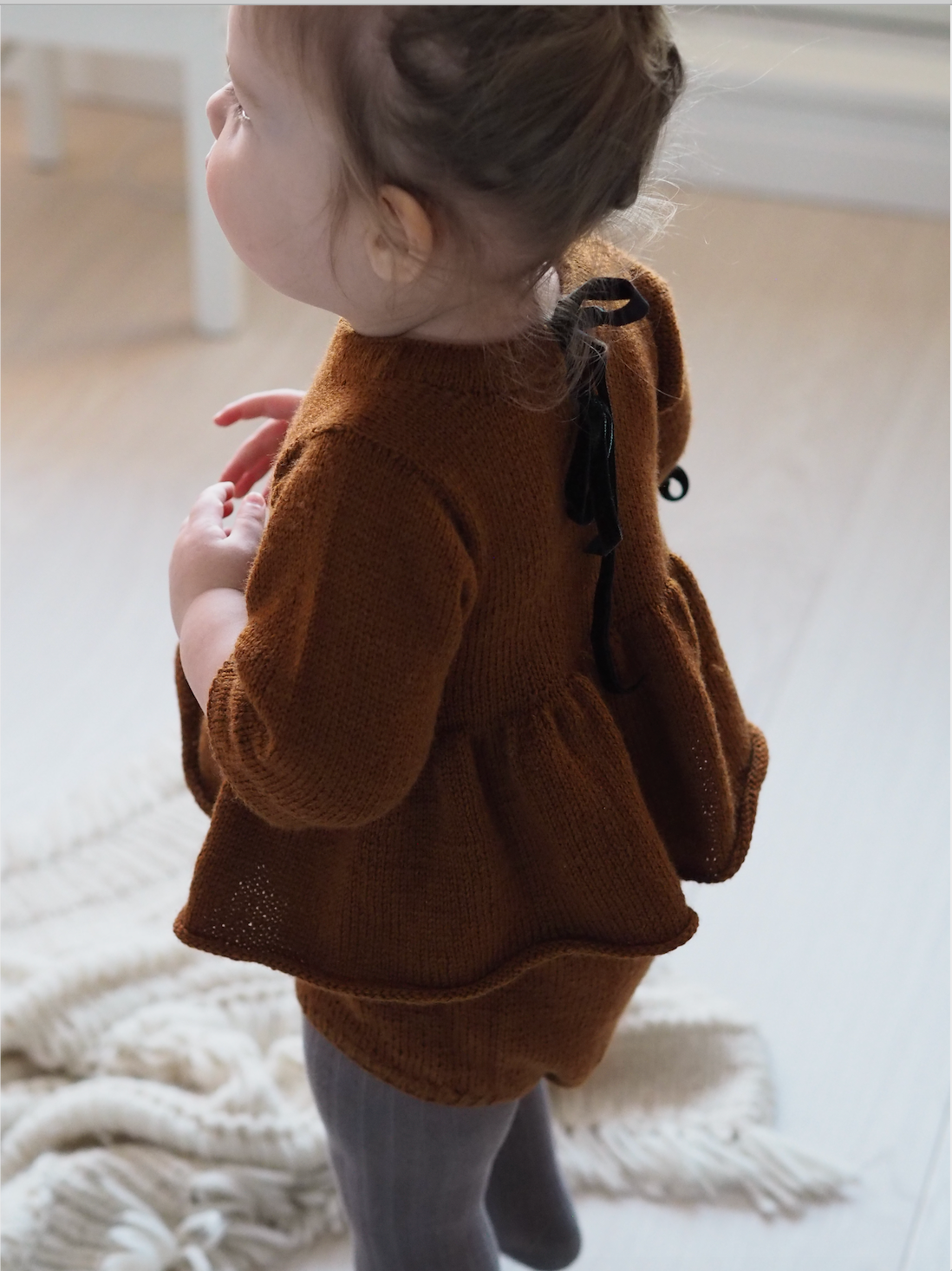 Ermene plukkes opp i ermeåpningen og strikkes på til slutt.