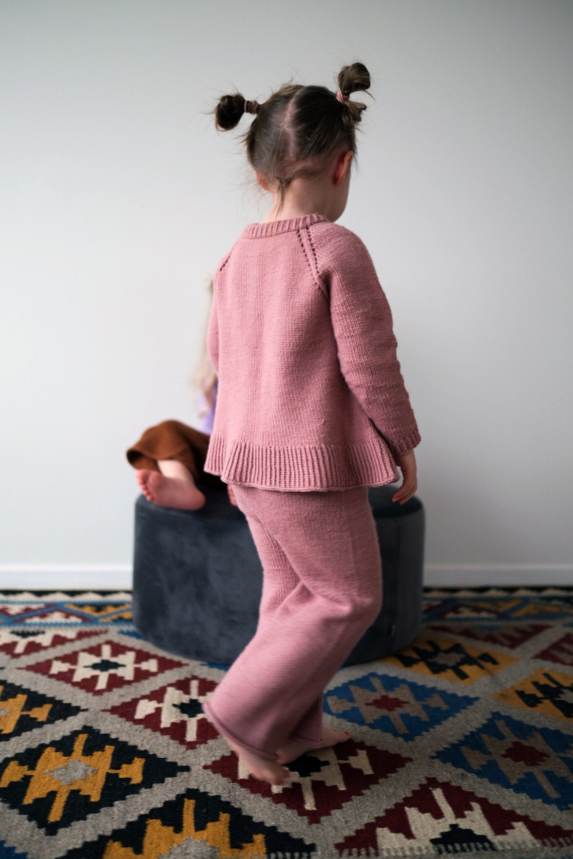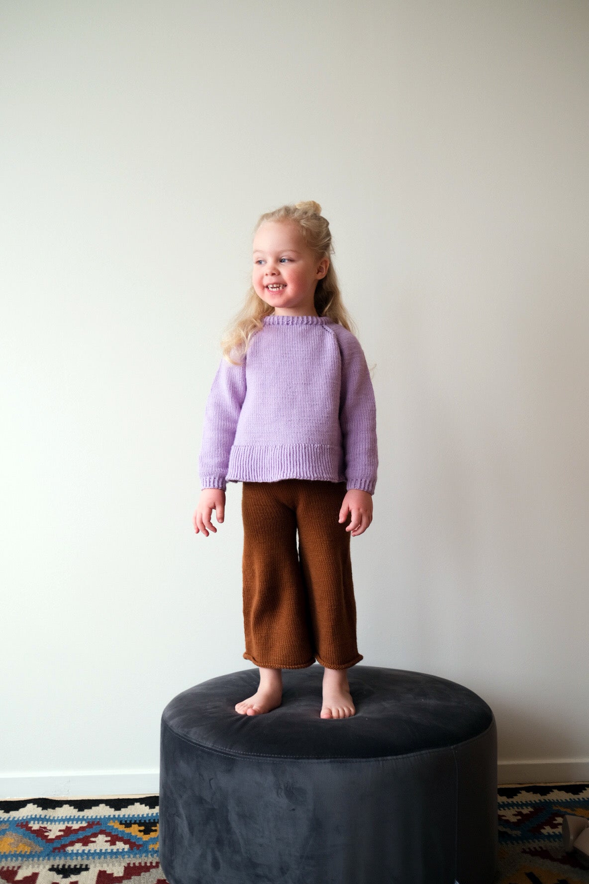 Softpop bukse strikkes ovenfra og ned og har strikk i midjen. Du kan velge mellom å lage den som en kort culottebukse, vanlig lengde eller som en ballongbukse med vrangbord nederst.Siden plagget strikkes ovenfra og ned kan den enkelt tilpasses i lengden underveis.