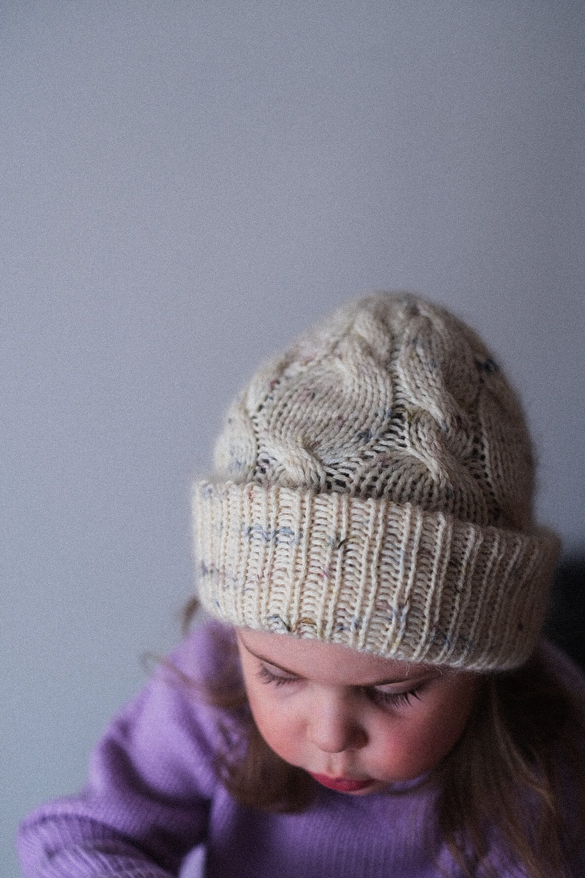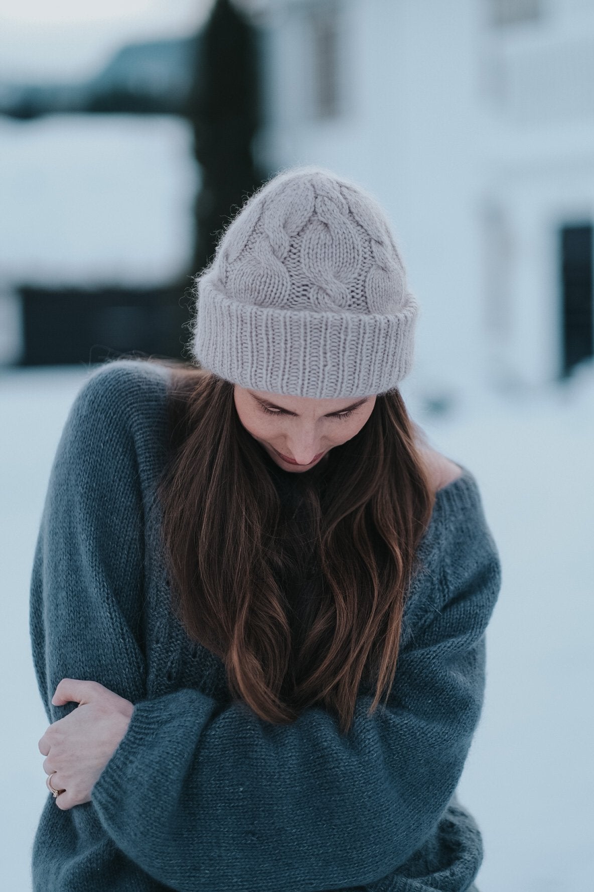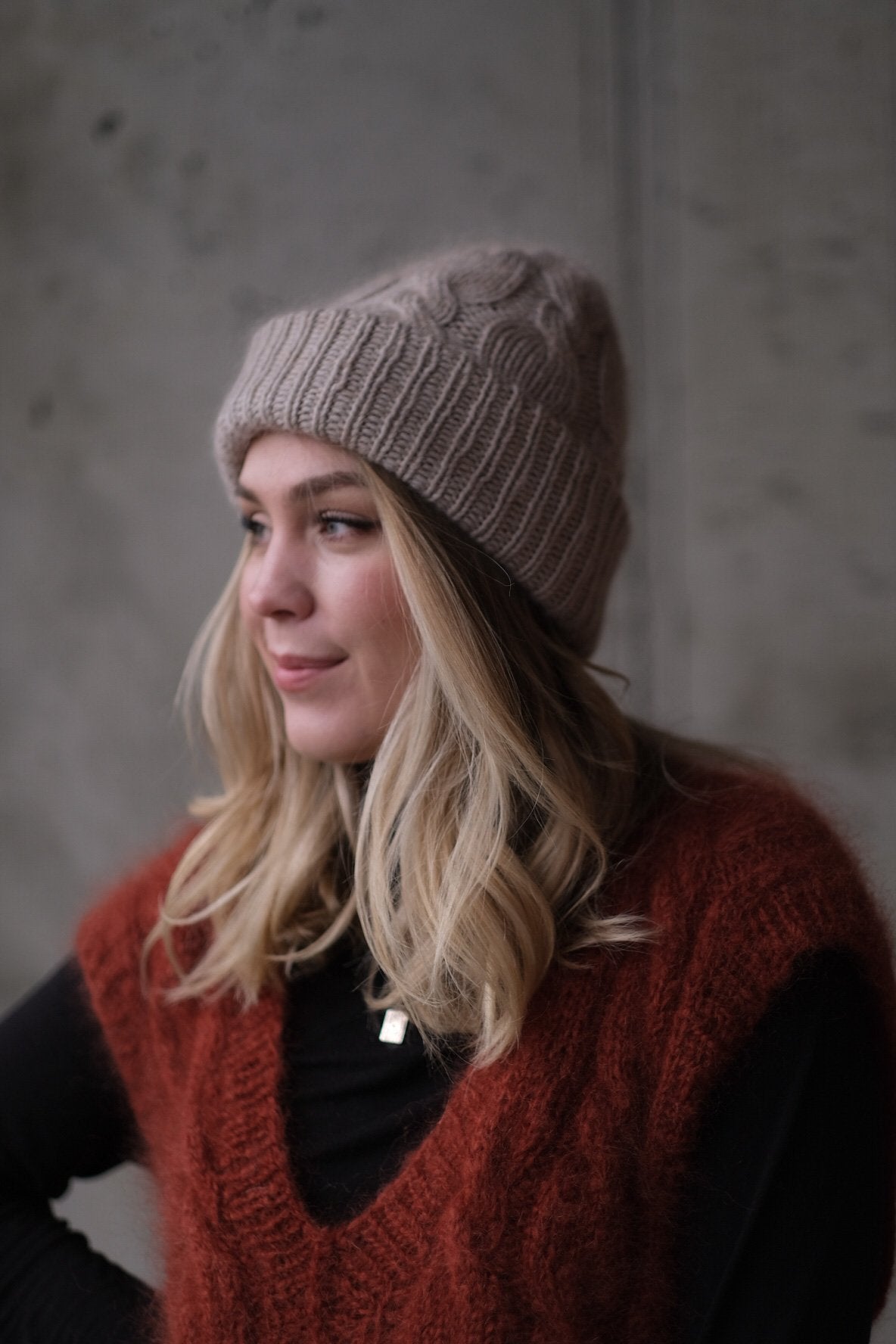 Twist lue er en tykk lue med et enkelt flettemønster. Luen strikkes først i vrangbord (1r, 1 vr) som strikkes sammen før man strikker videre i flettestrikk etter diagram.