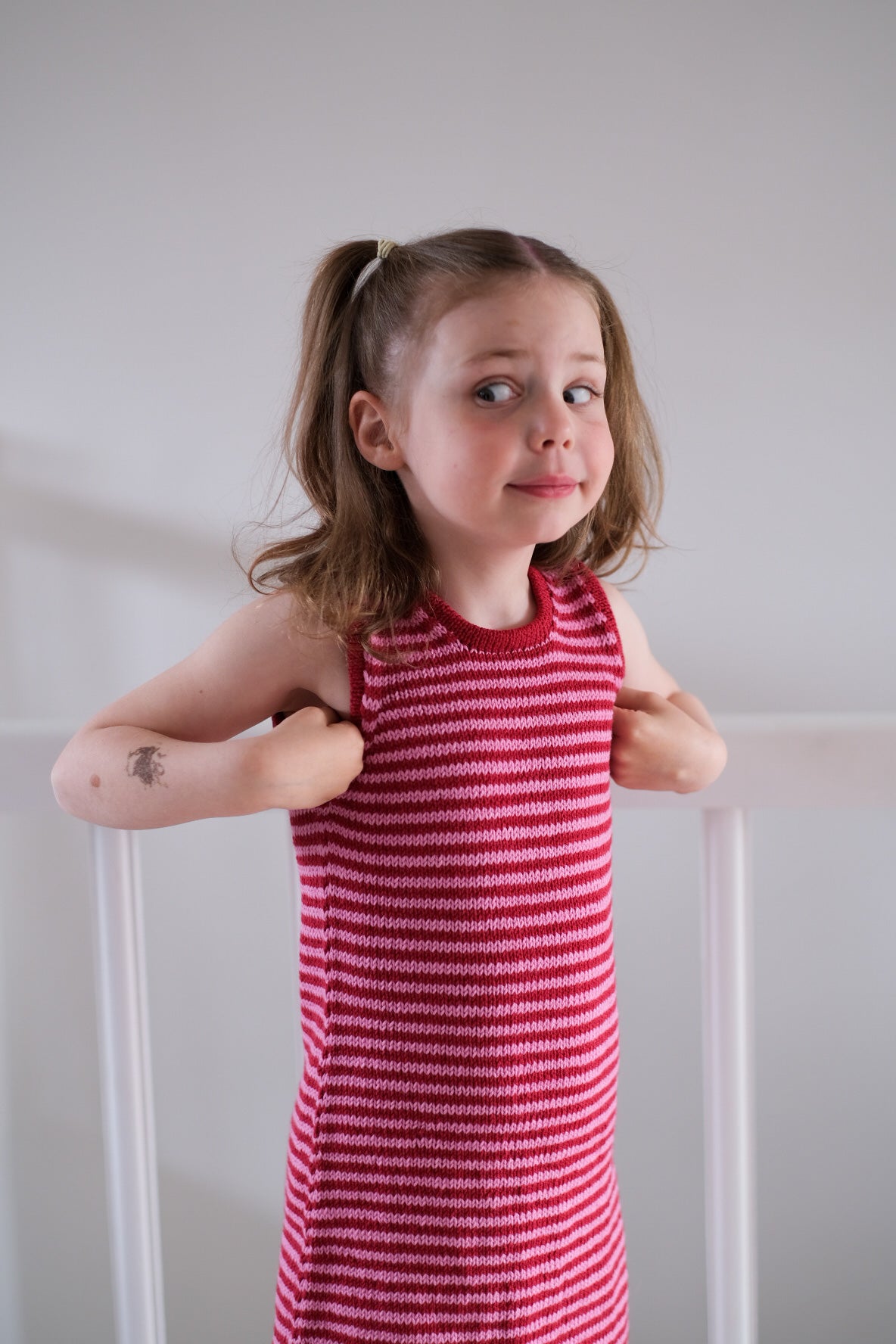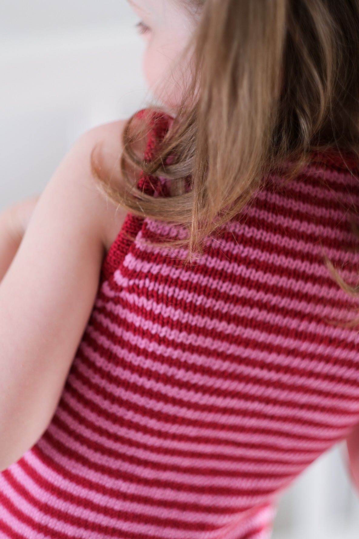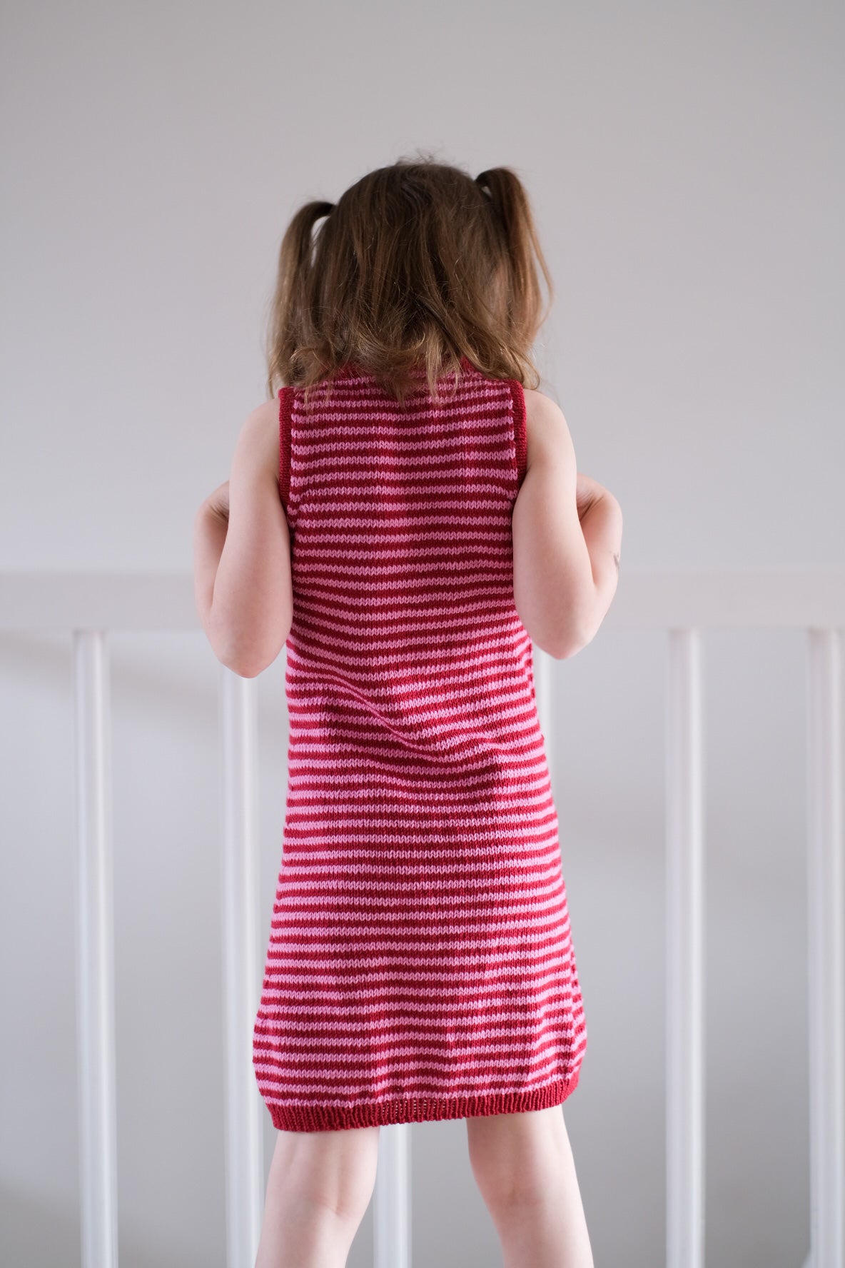 Un-told basic kjole JR er akkurat så basic som du vil ha den! Strikk den med striper eller ensfarget etter eget ønske. Siden den strikkes ovenfra kan den med fordel prøves på underveis for den perfekte lengden til mottaker!