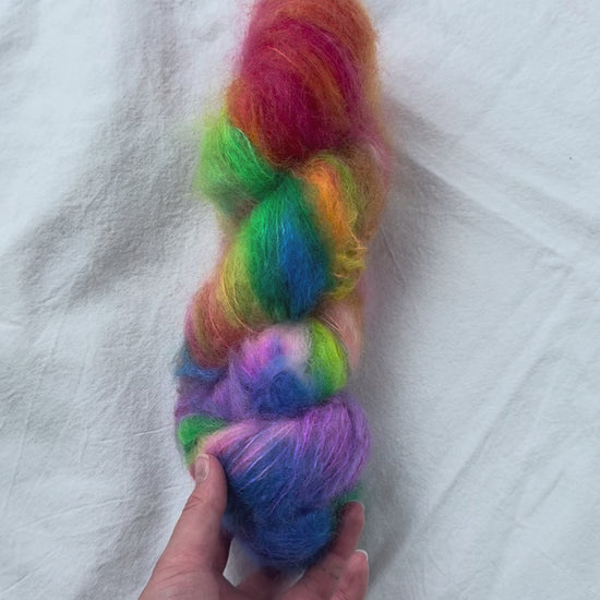 Un-told Chunky mohair er myk og fluffy Non-superwash fat mohair! Garnet er håndfarget av Un-told. Chunky mohair kommer opprinnelig fra Sør-Afrika på gårder hvor mulesing ikke foregår.