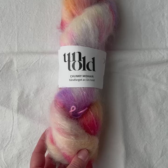 Un-told Chunky mohair er myk og fluffy Non-superwash fat mohair! Garnet er håndfarget av Un-told. Chunky mohair kommer opprinnelig fra Sør-Afrika på gårder hvor mulesing ikke foregår.