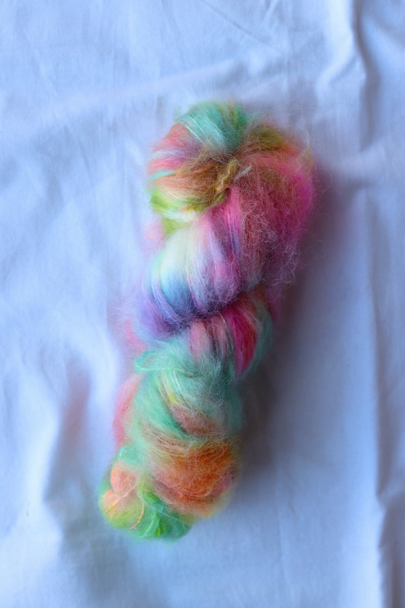 Un-told Chunky mohair er myk og fluffy Non-superwash fat mohair! Garnet er håndfarget av Un-told. Chunky mohair kommer opprinnelig fra Sør-Afrika på gårder hvor mulesing ikke foregår.