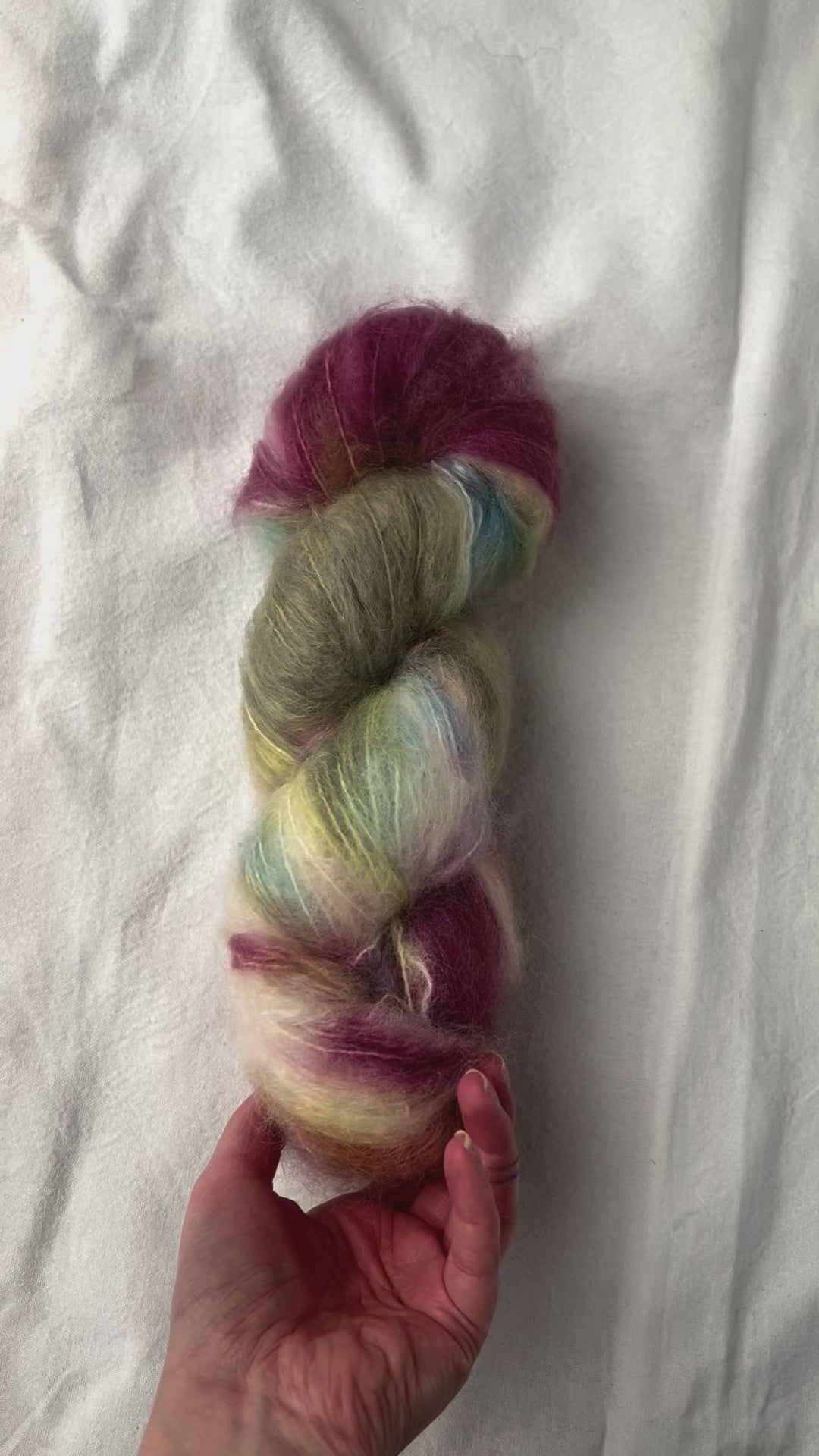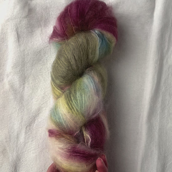 Un-told Chunky mohair er myk og fluffy Non-superwash fat mohair! Garnet er håndfarget av Un-told. Chunky mohair kommer opprinnelig fra Sør-Afrika på gårder hvor mulesing ikke foregår.