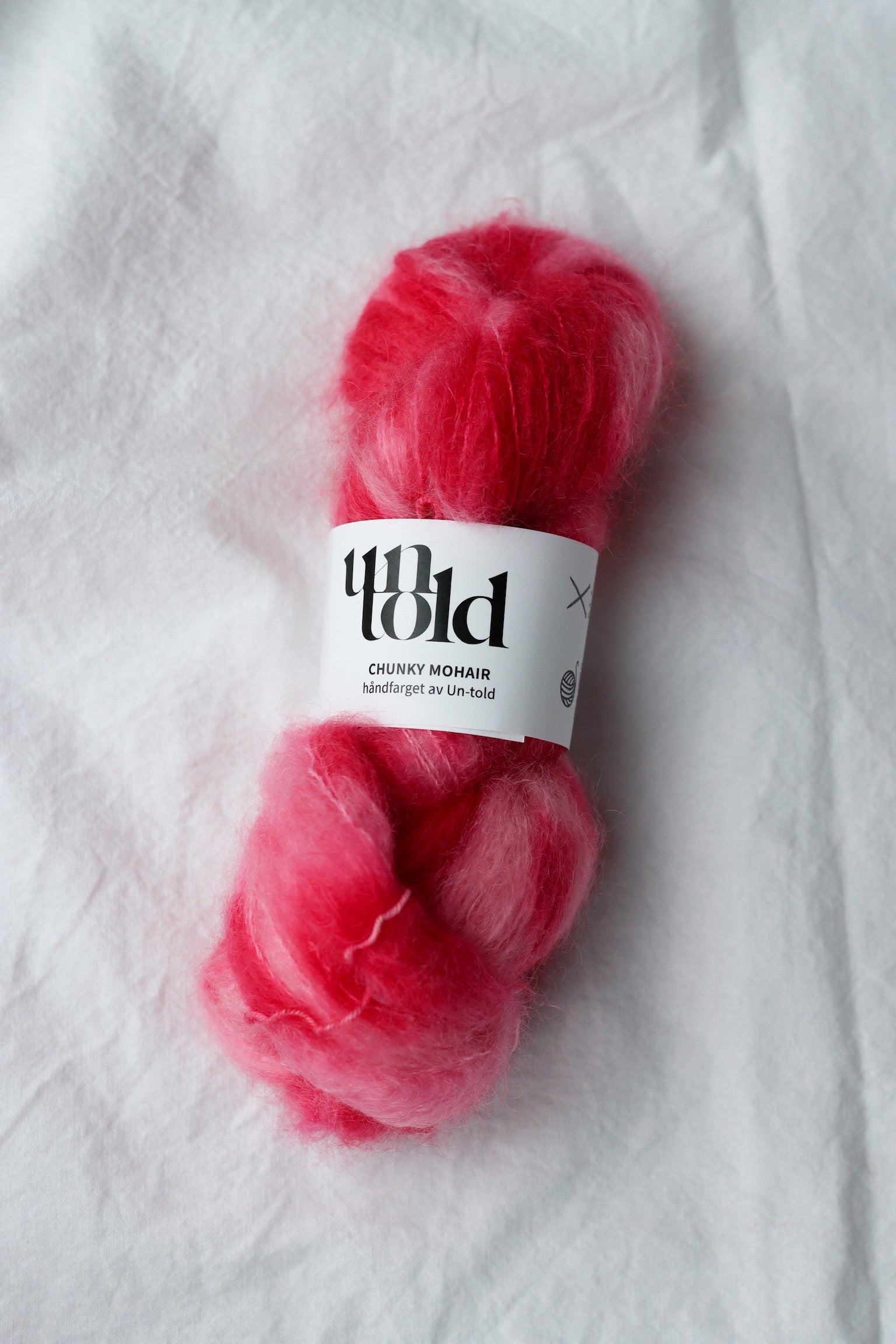 Un-told Chunky mohair er myk og fluffy Non-superwash fett mohair! Garnet er håndfarget av Un-told. Chunky mohair kommer opprinnelig fra Sør-Afrika på gårder hvor mulesing ikke foregår.