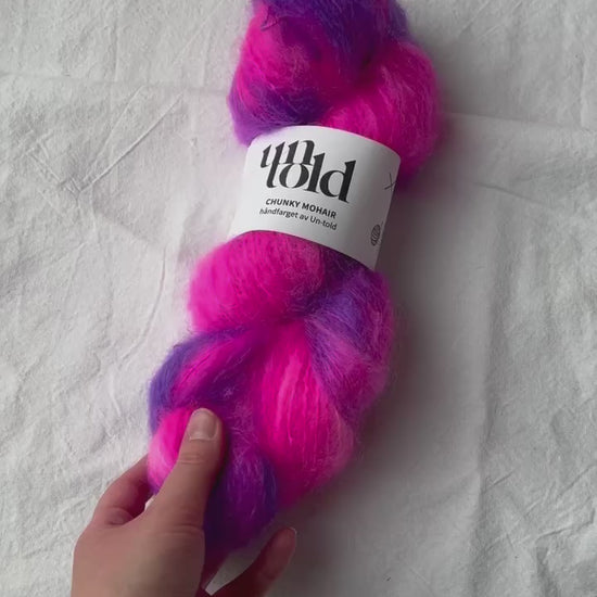 Un-told Chunky mohair er myk og fluffy Non-superwash fett mohair! Garnet er håndfarget av Un-told. Chunky mohair kommer opprinnelig fra Sør-Afrika på gårder hvor mulesing ikke foregår.