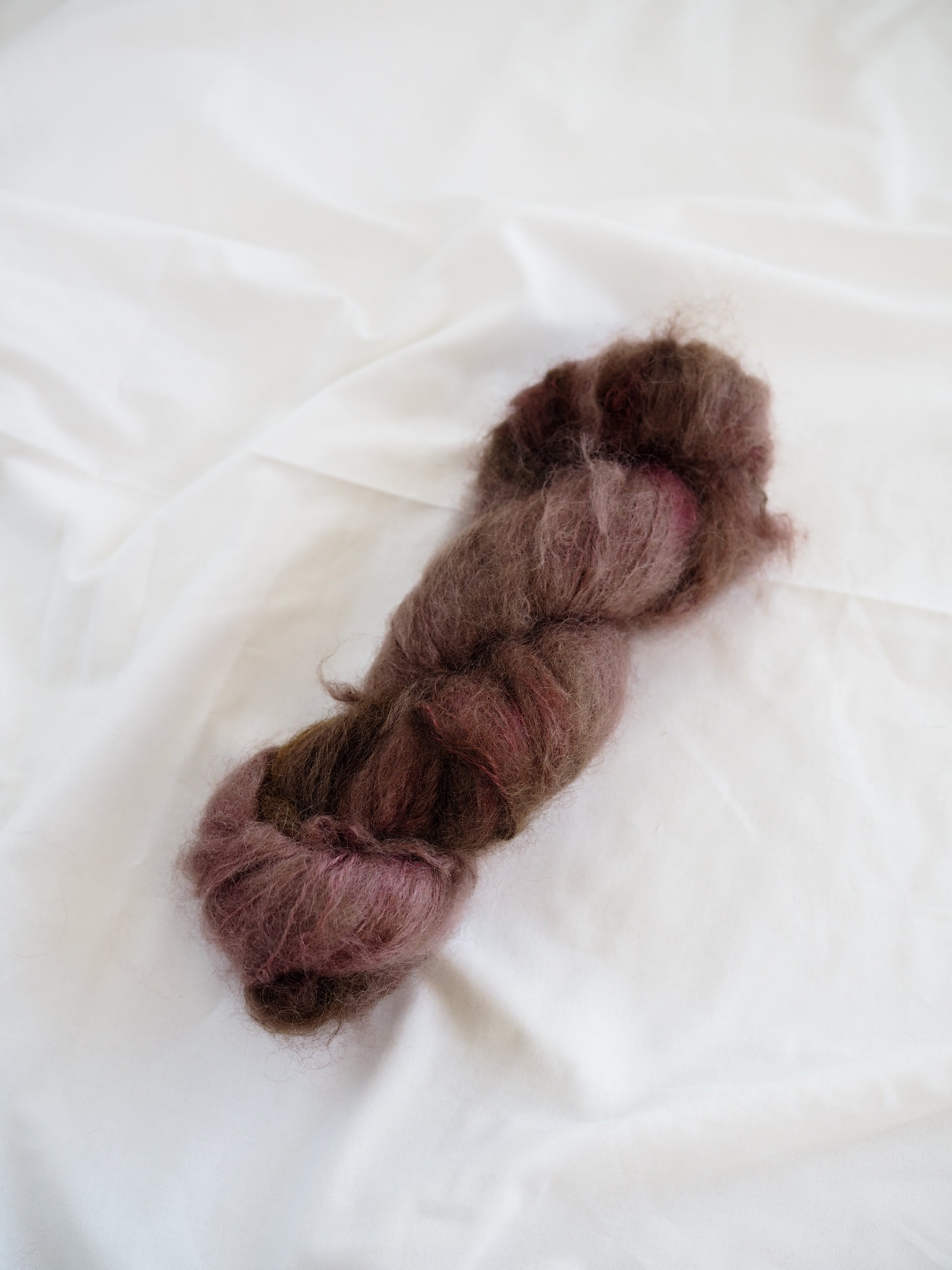 Un-told Chunky mohair er myk og fluffy Non-superwash fat mohair! Garnet er håndfarget av Un-told. Chunky mohair kommer opprinnelig fra Sør-Afrika på gårder hvor mulesing ikke foregår.