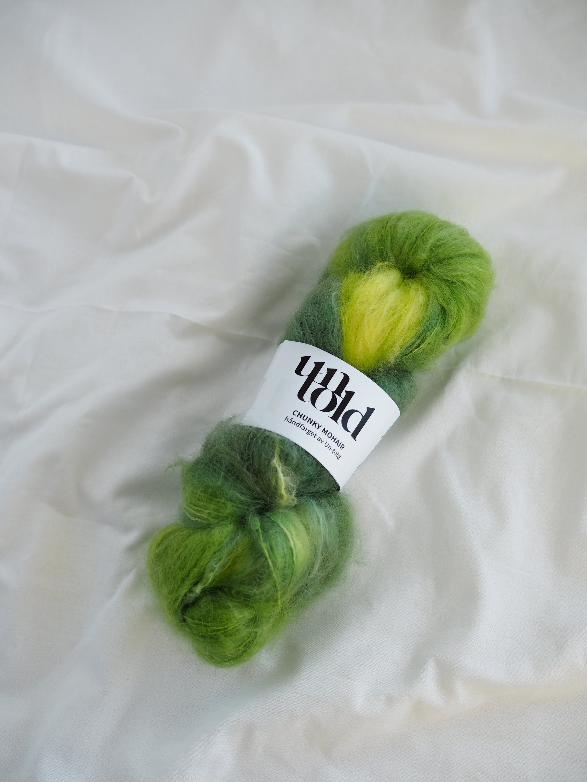 Un-told Chunky mohair er myk og fluffy Non-superwash fat mohair! Garnet er håndfarget av Un-told. Chunky mohair kommer opprinnelig fra Sør-Afrika på gårder hvor mulesing ikke foregår.