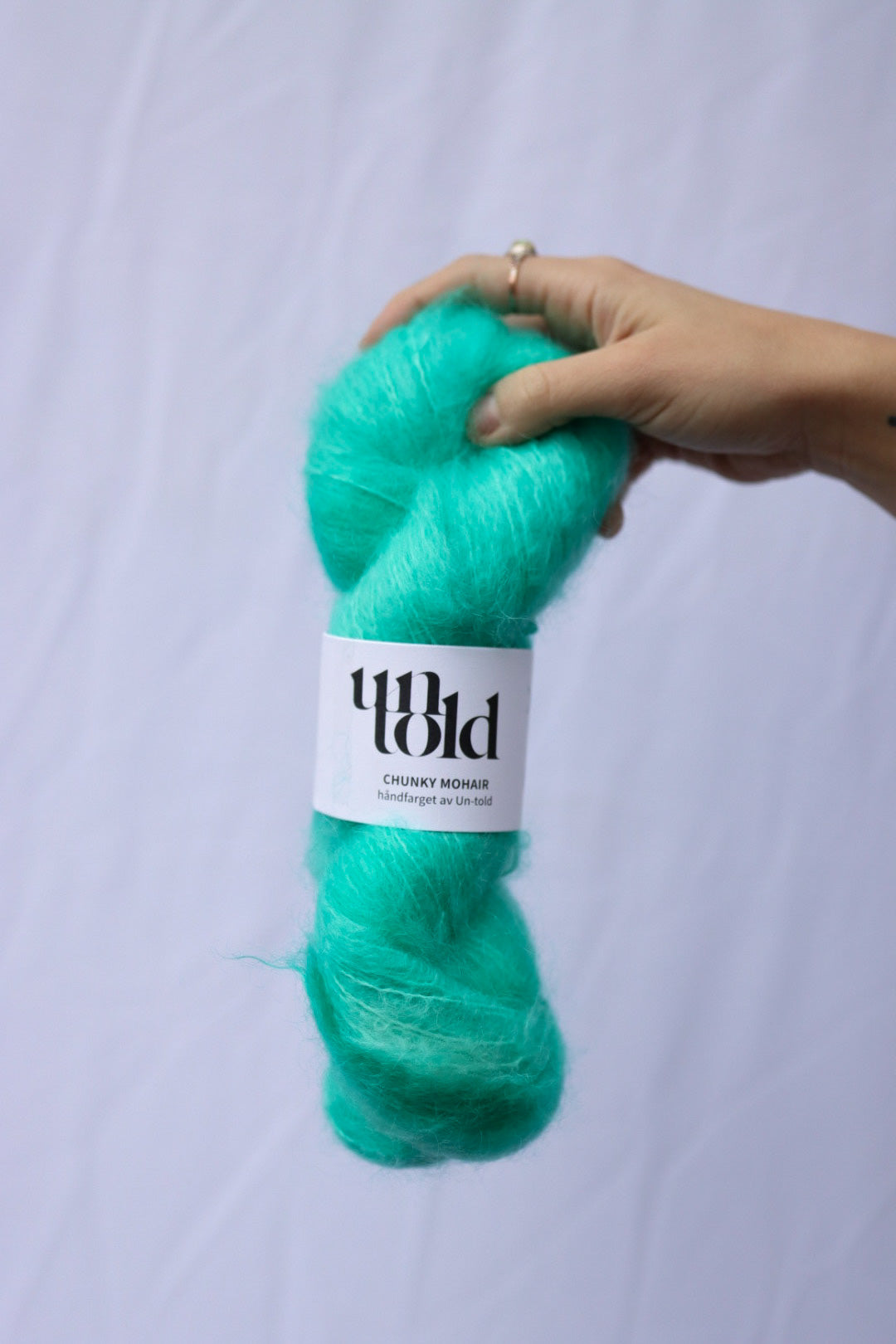 Un-told Chunky mohair er myk og fluffy Non-superwash fat mohair! Garnet er håndfarget av Un-told. Chunky mohair kommer opprinnelig fra Sør-Afrika på gårder hvor mulesing ikke foregår.