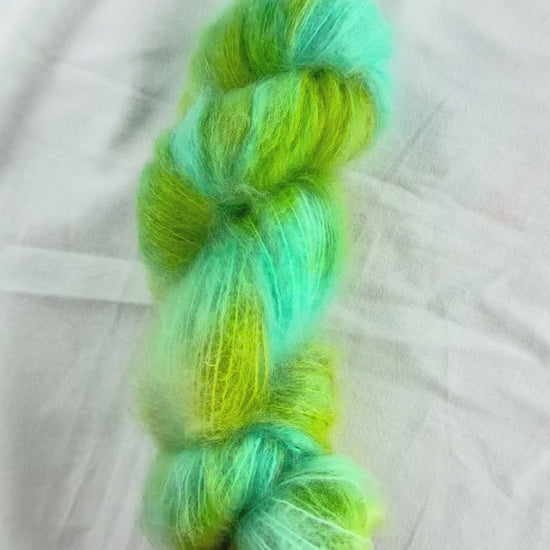 Un-told Chunky mohair er myk og fluffy Non-superwash fat mohair! Garnet er håndfarget av Un-told. Chunky mohair kommer opprinnelig fra Sør-Afrika på gårder hvor mulesing ikke foregår.