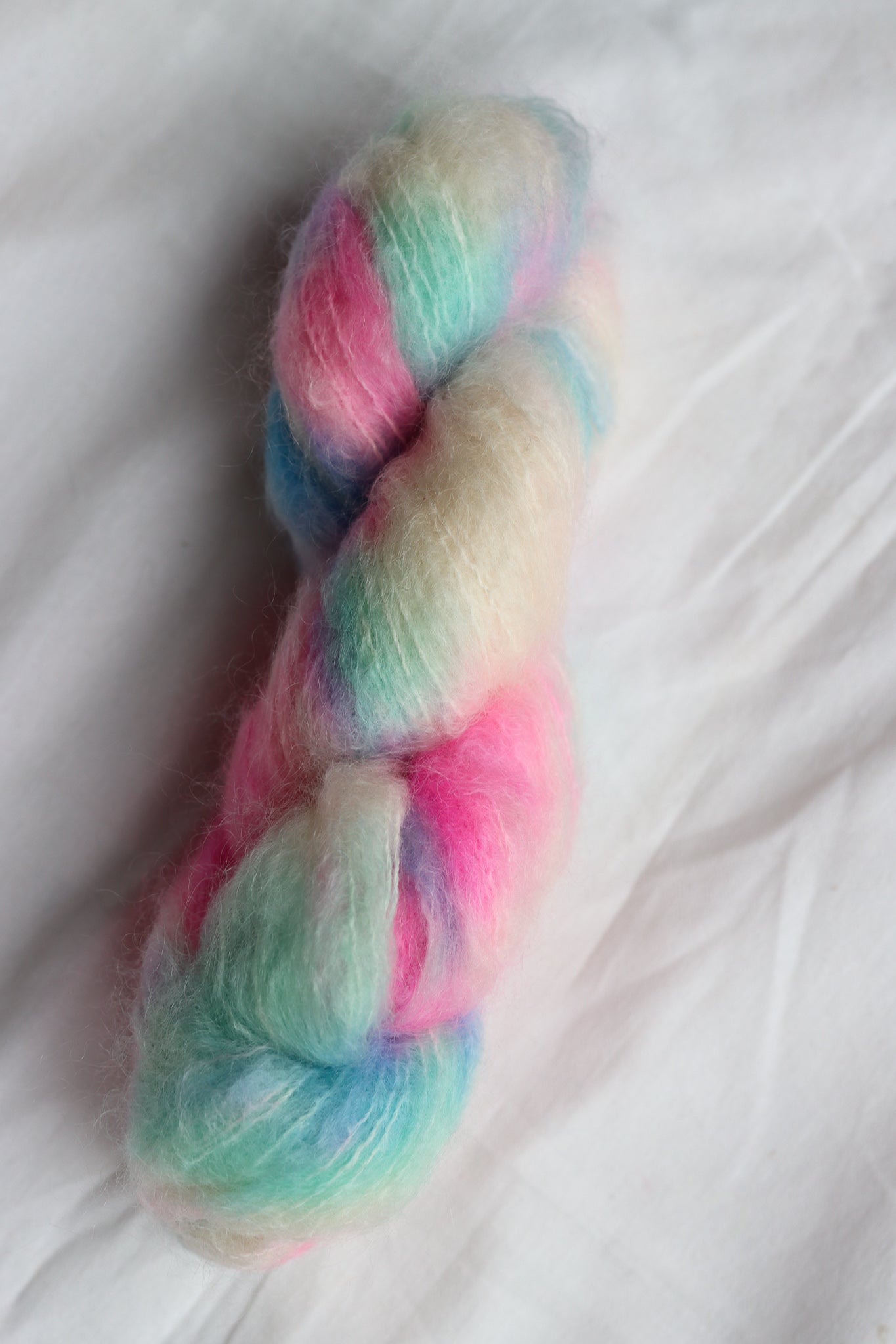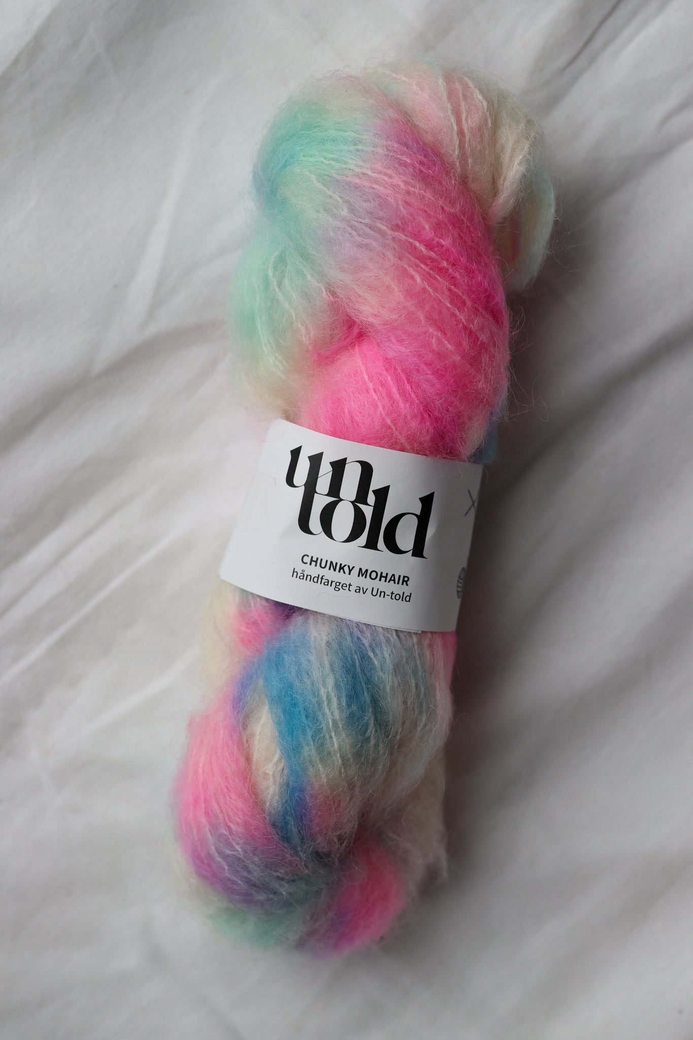 Un-told Chunky mohair er myk og fluffy Non-superwash fat mohair! Garnet er håndfarget av Un-told. Chunky mohair kommer opprinnelig fra Sør-Afrika på gårder hvor mulesing ikke foregår.