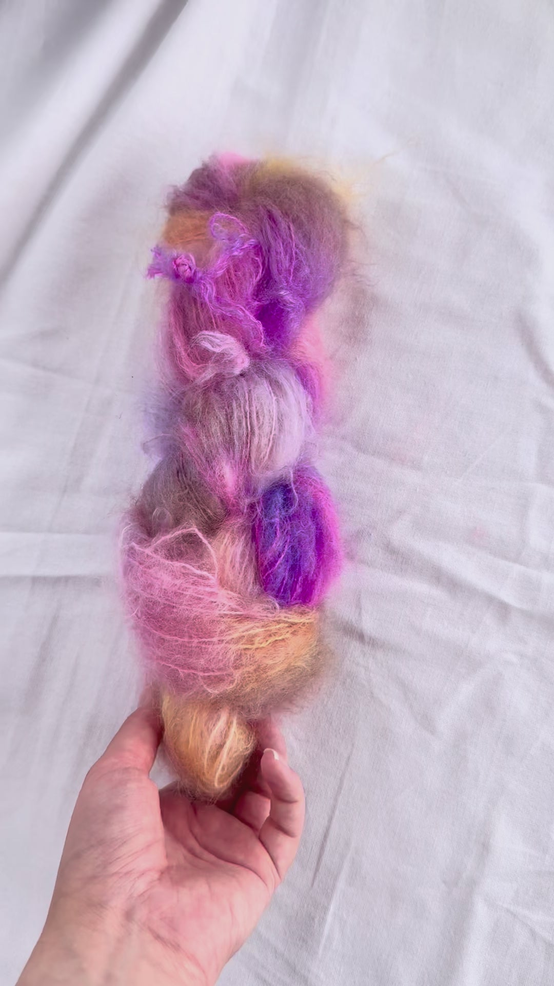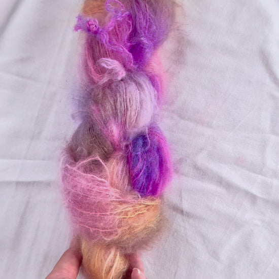 Un-told Chunky mohair er myk og fluffy Non-superwash fat mohair! Garnet er håndfarget av Un-told. Chunky mohair kommer opprinnelig fra Sør-Afrika på gårder hvor mulesing ikke foregår.