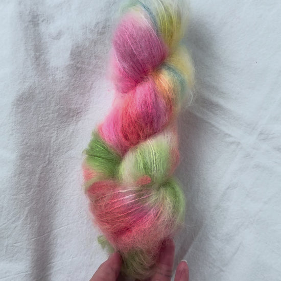 Un-told Chunky mohair er myk og fluffy Non-superwash fat mohair! Garnet er håndfarget av Un-told. Chunky mohair kommer opprinnelig fra Sør-Afrika på gårder hvor mulesing ikke foregår.